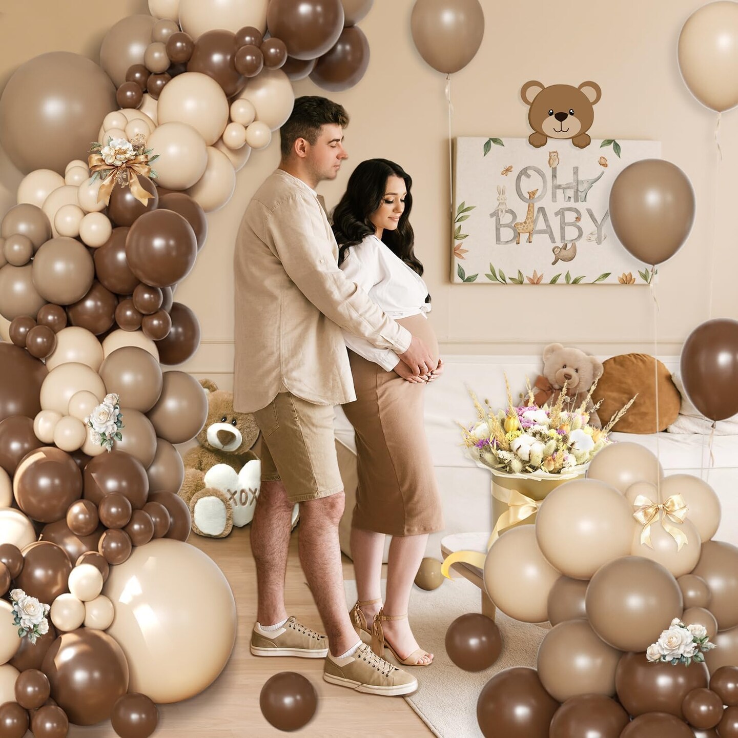 Brown Balloon Arch Kit 138 Pcs Neutral Balloon Arch Garland Kit Include Brown Beige Nude Tan Balloons for Baby Shower Gender Reveal Wedding Birthday Party Decoration (Brown and Beige)