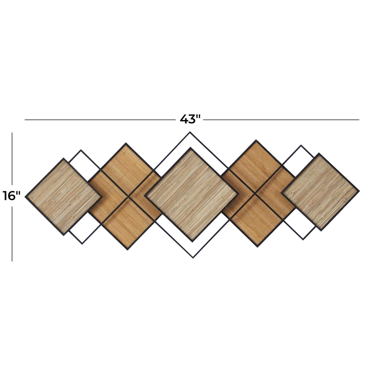 Brown Bamboo Wood Geometric Overlapping Diamond Home Wall Decor with Metal Wire
