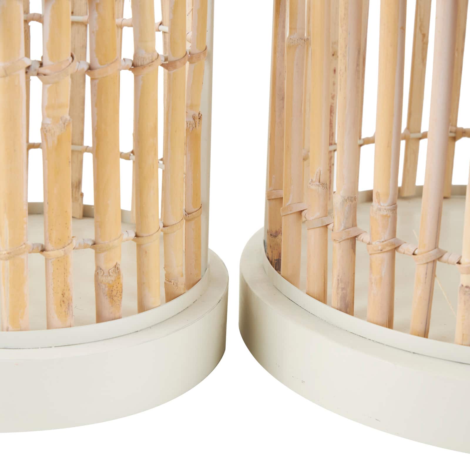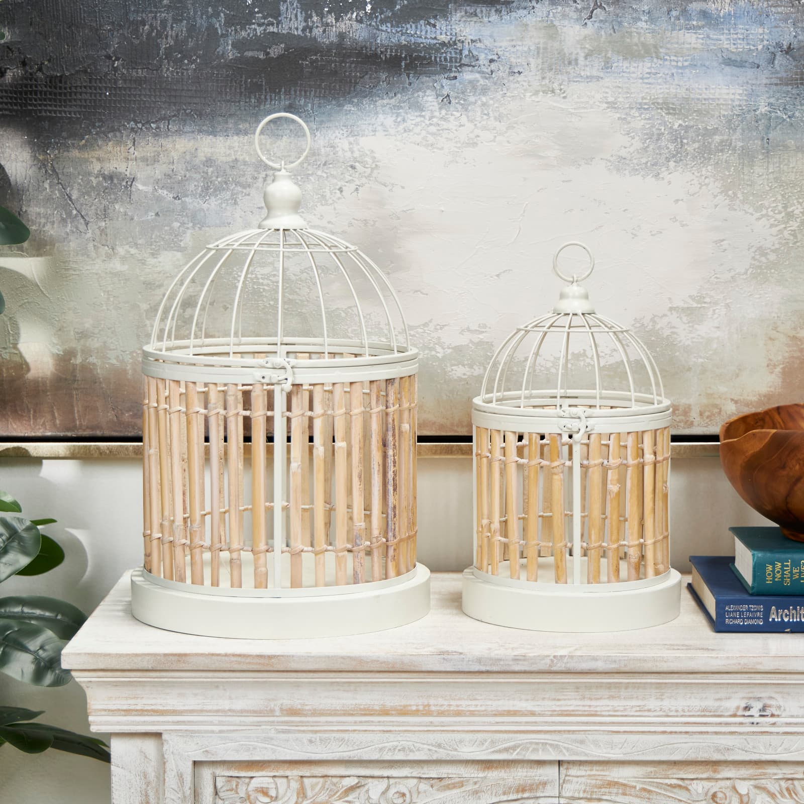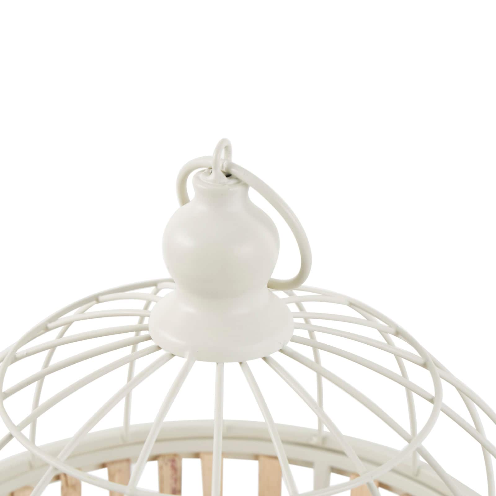 Brown Bamboo Wood Handmade Birdcage Set with White Metal Accents