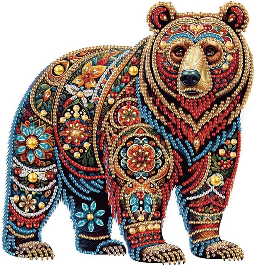 Brown Bear 5D Special Shape Diamond Painting Kit for Adults – Crystal Rhinestone DIY Art, Beginner-Friendly 12×12 Inch Wall Décor & Gift