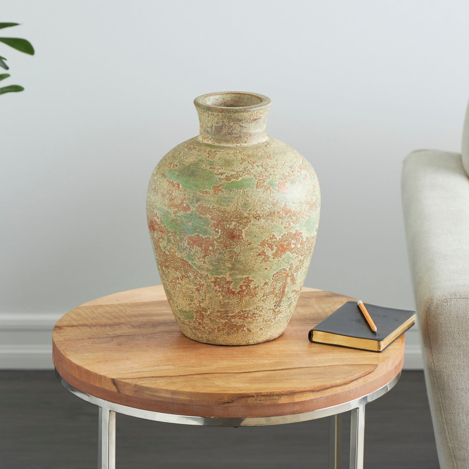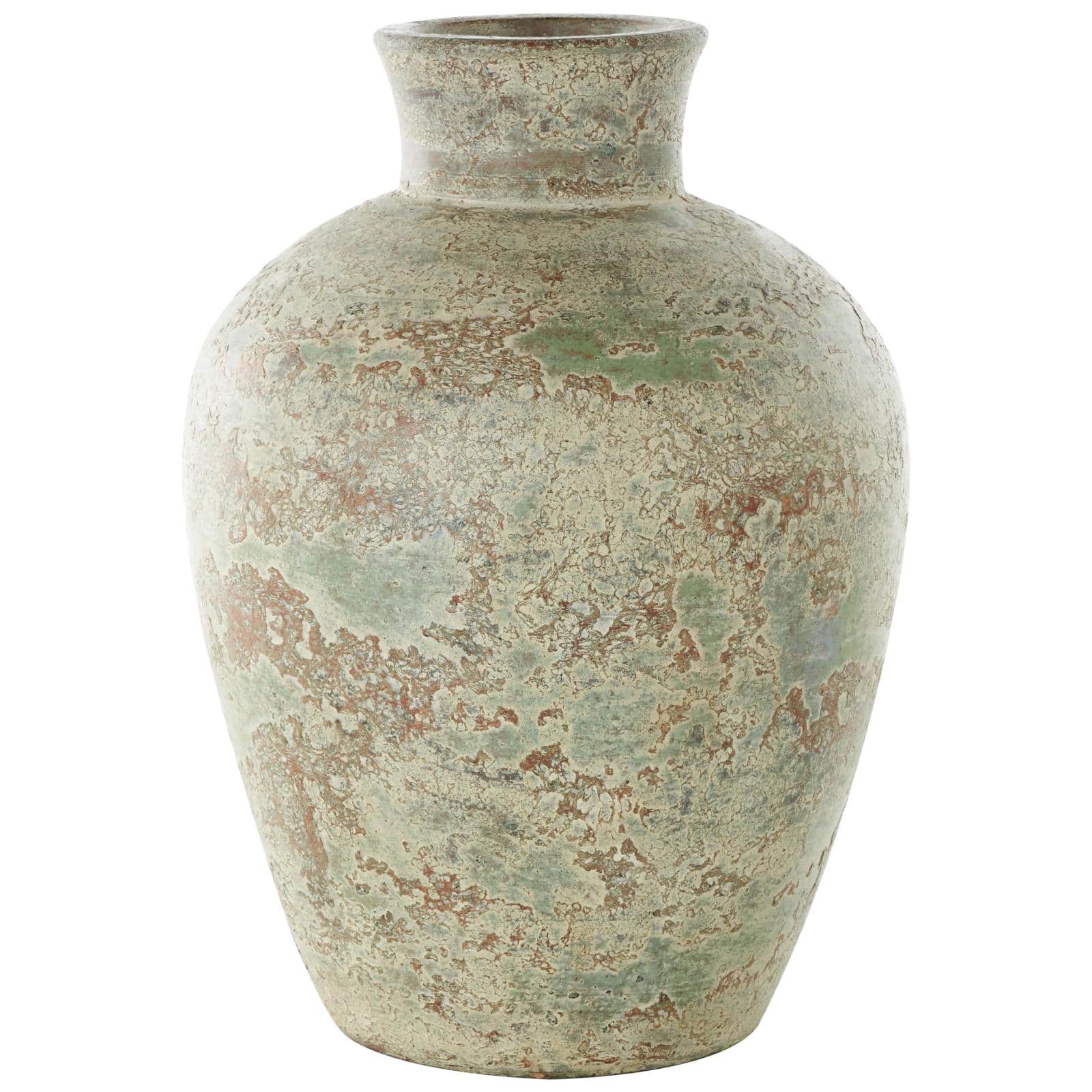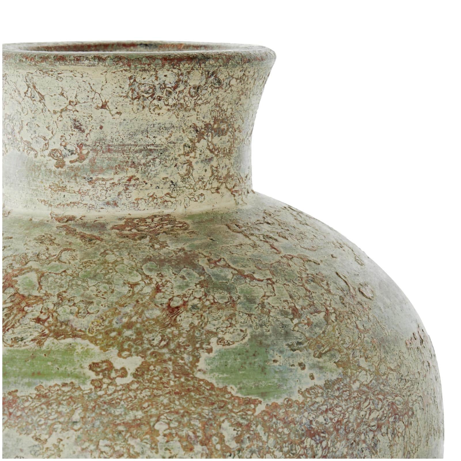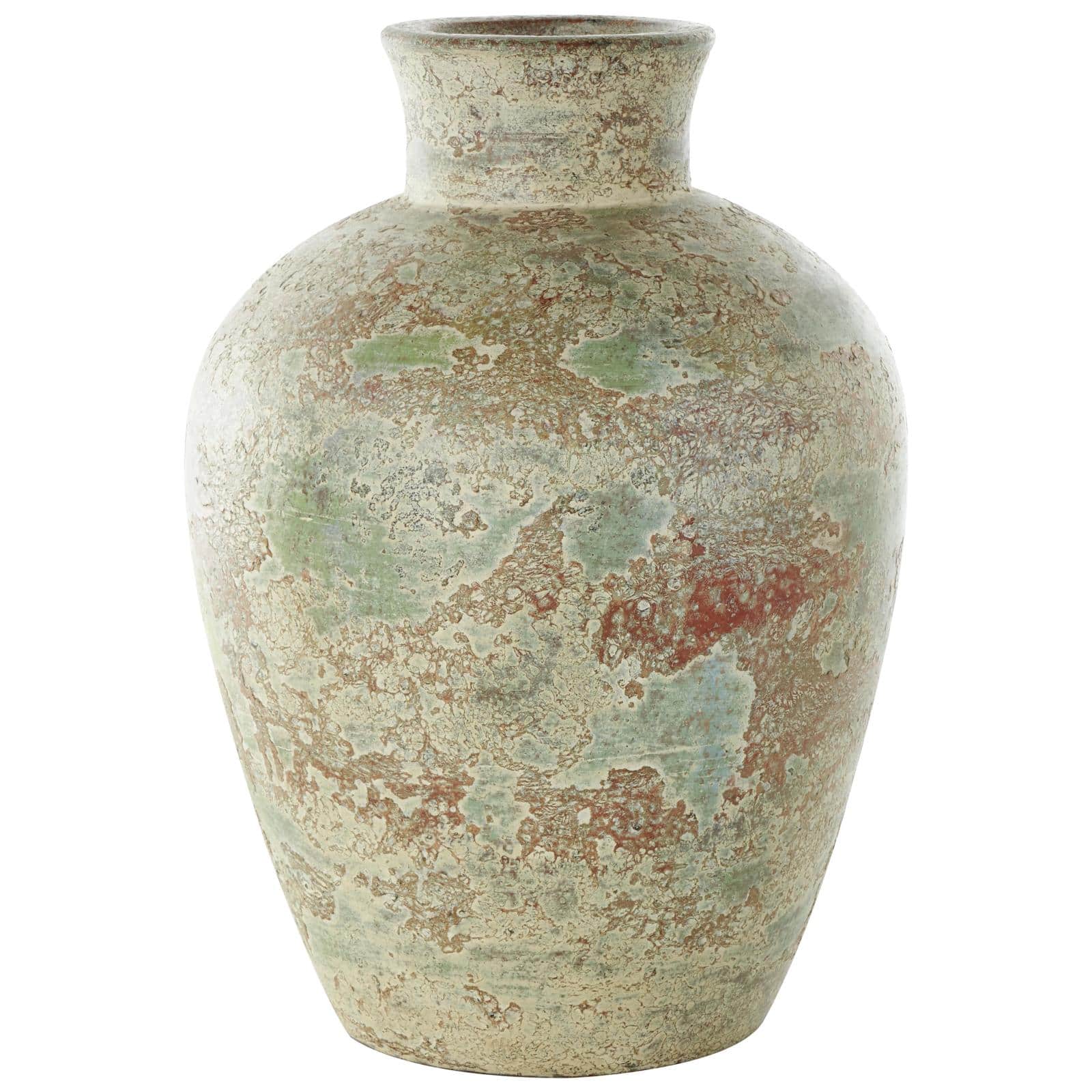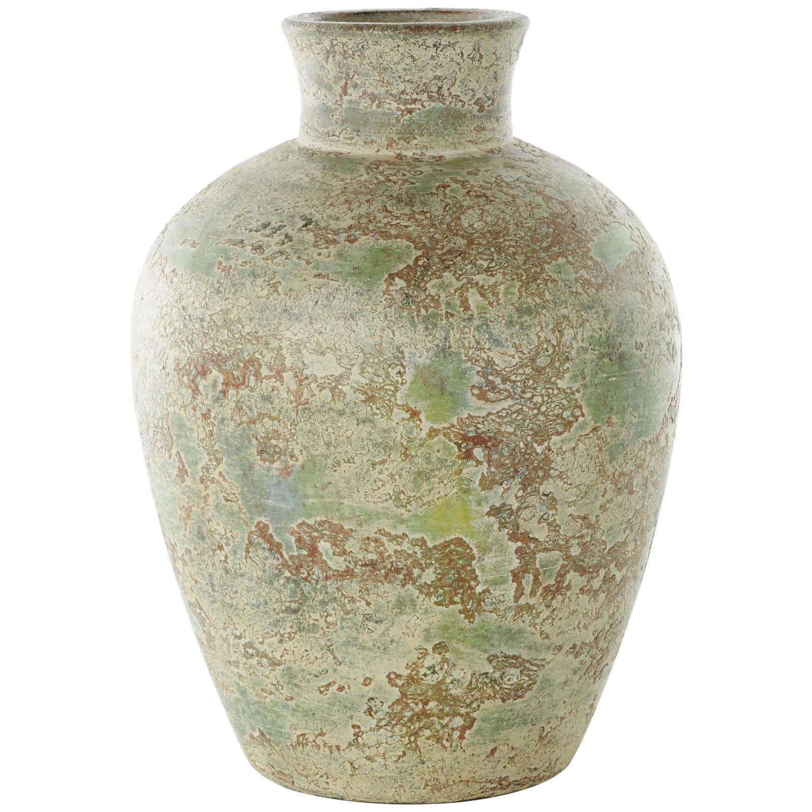 Brown Ceramic Vase with Green Accents
