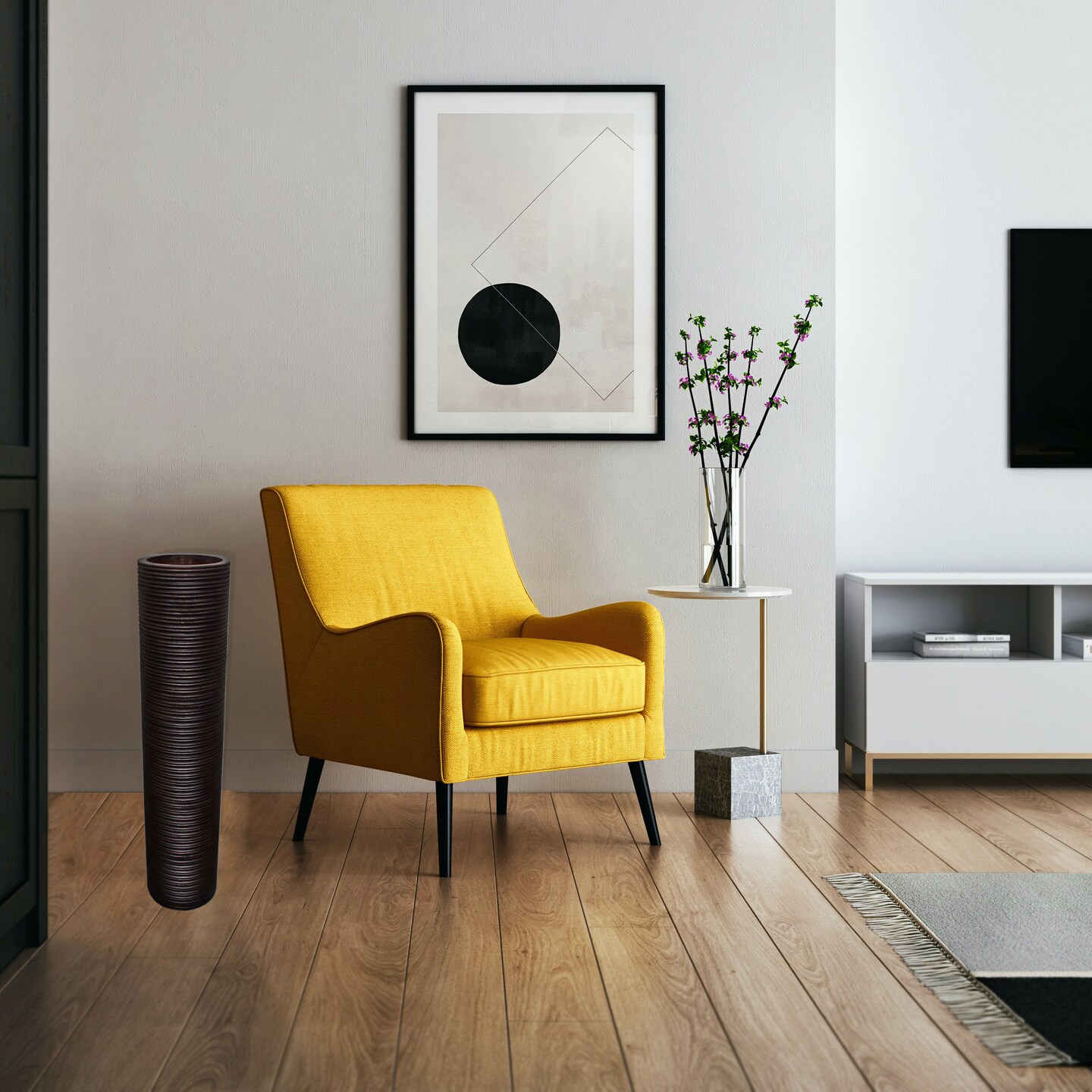 Brown Decorative Contemporary Mango Wood Ribbed Design Cylinder Shaped Vase