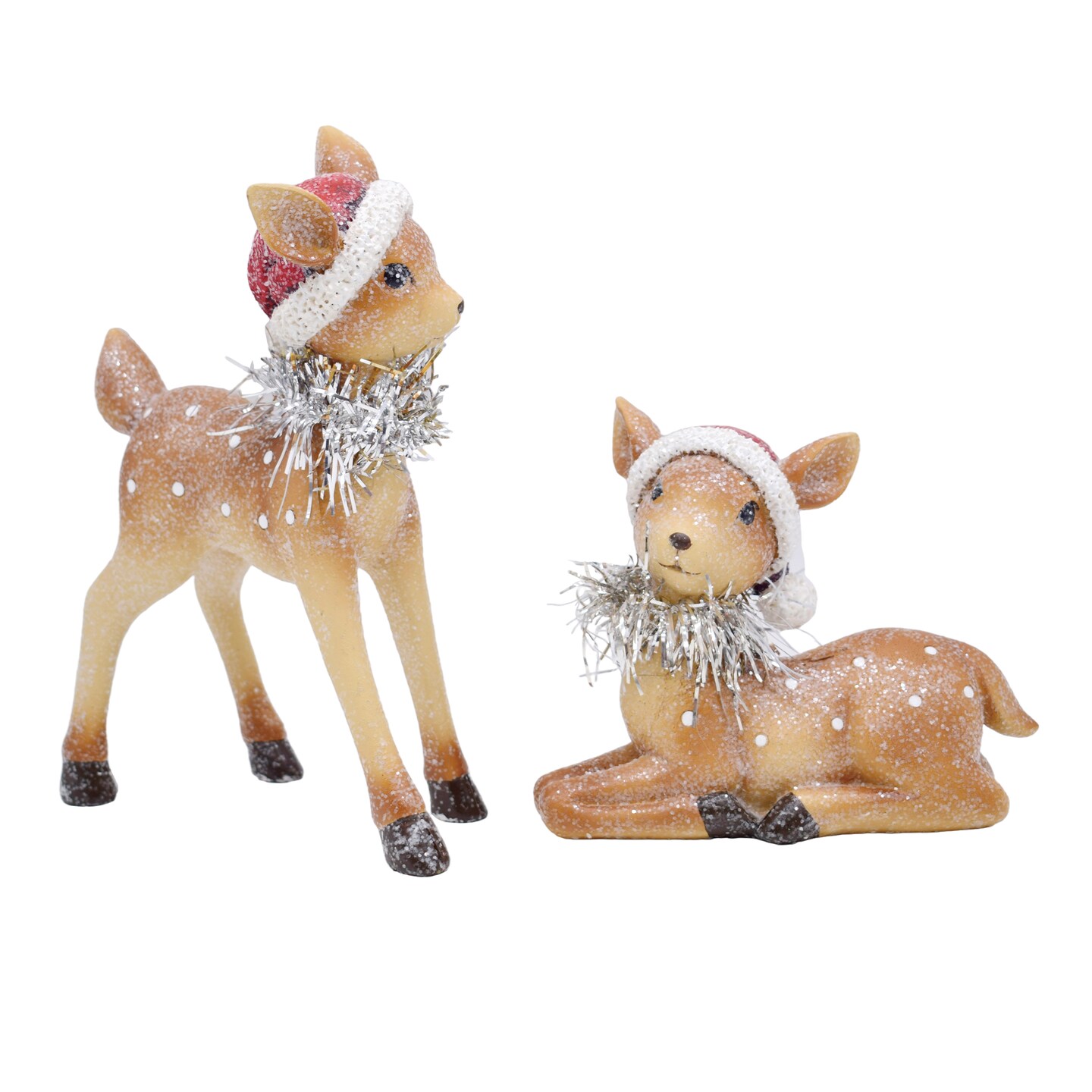 Brown Deer Figurines Set of 2 with Tinsel for Christmas Decor