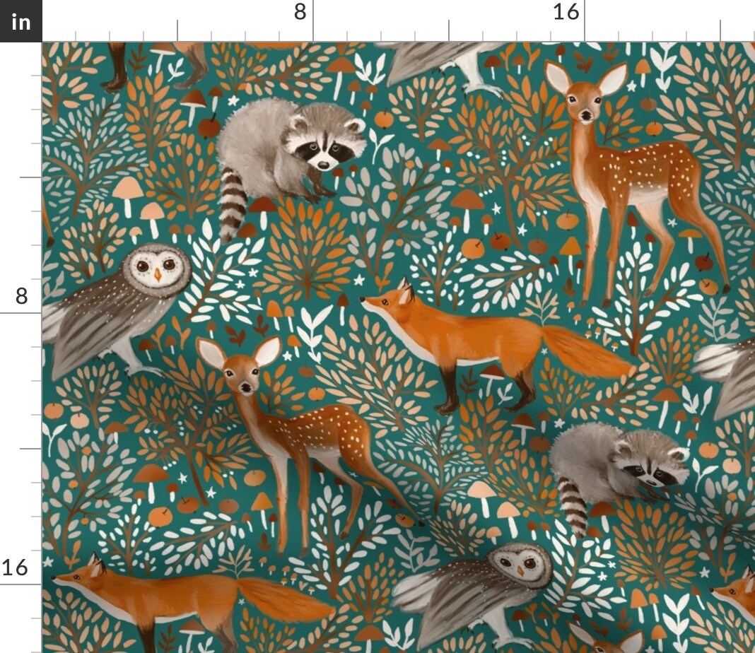 Brown Forest Animals Dark Green Woodland Wild Bear Winter Custom Printed Fabric by Spoonflower Various Fabrics by the Yard or Fat Quarter
