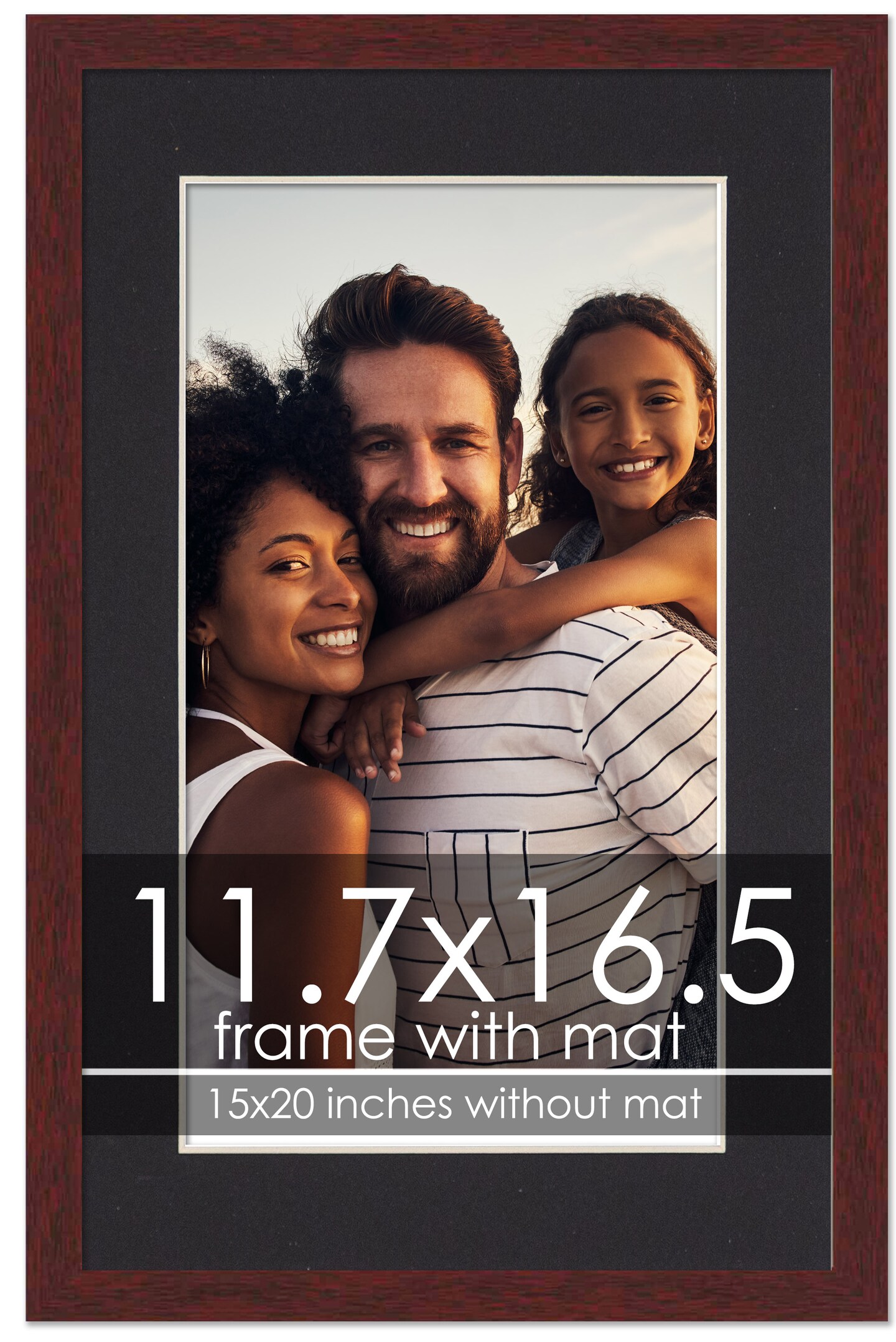 Brown Frame Wood Grain with Black Photo Mat, UV Acrylic Front, Foam Board Backing, 60 Sizes Available