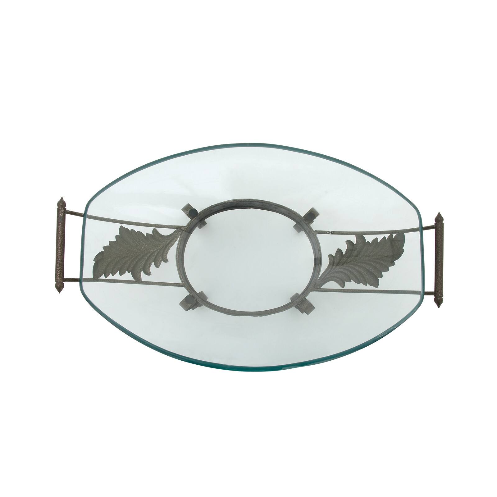 Brown Glass and Metal Traditional Serving Bowl, 10" x 23" x 14"