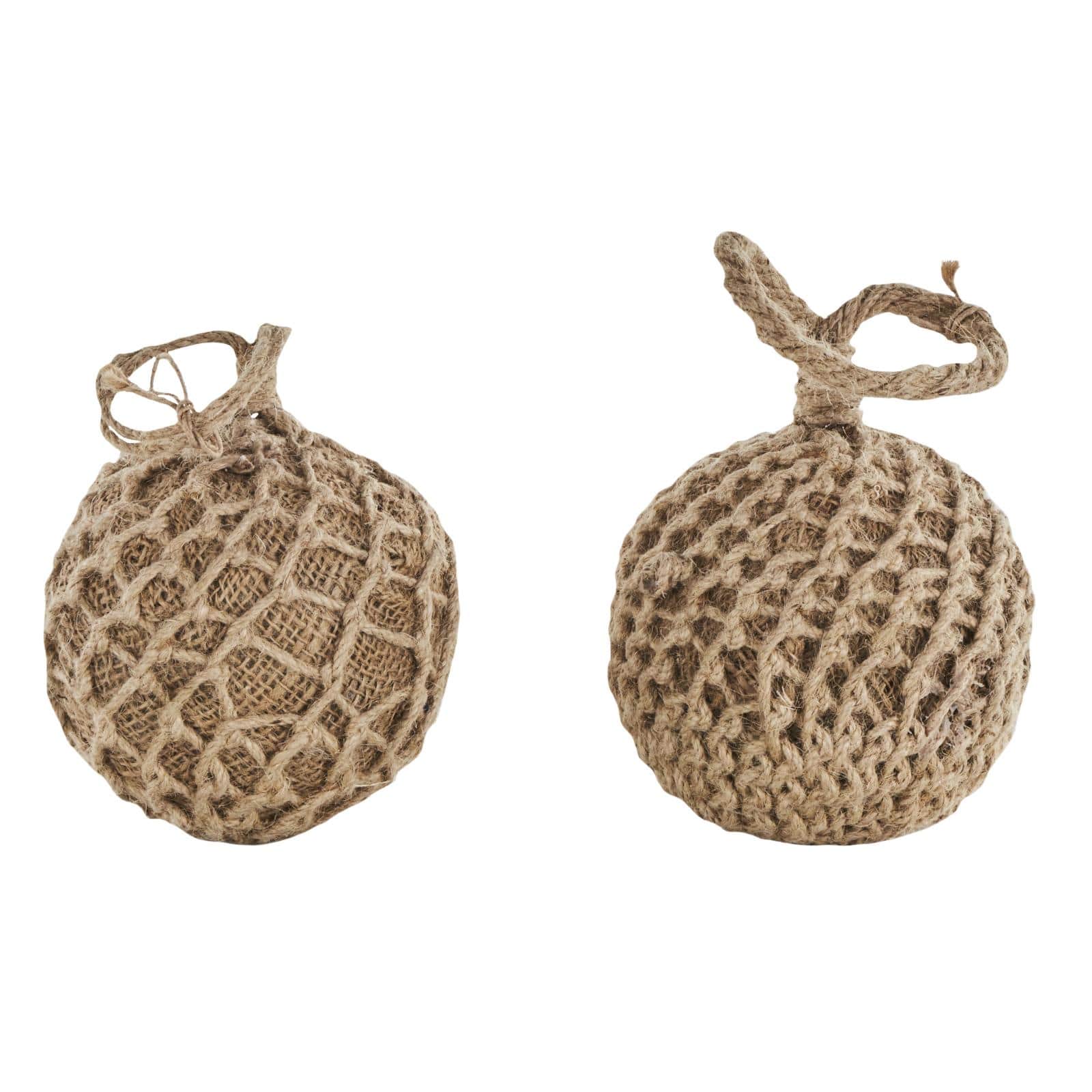 Brown Handmade Woven Knotted Rope & Cement Orb Sculpture with Handles Set
