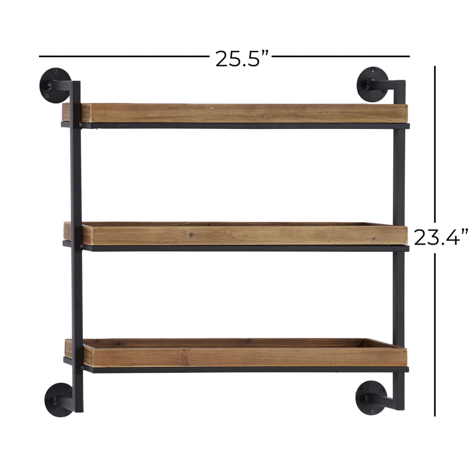Brown Metal and Wood Industrial Wall Shelves, 7" x 26" x 23"