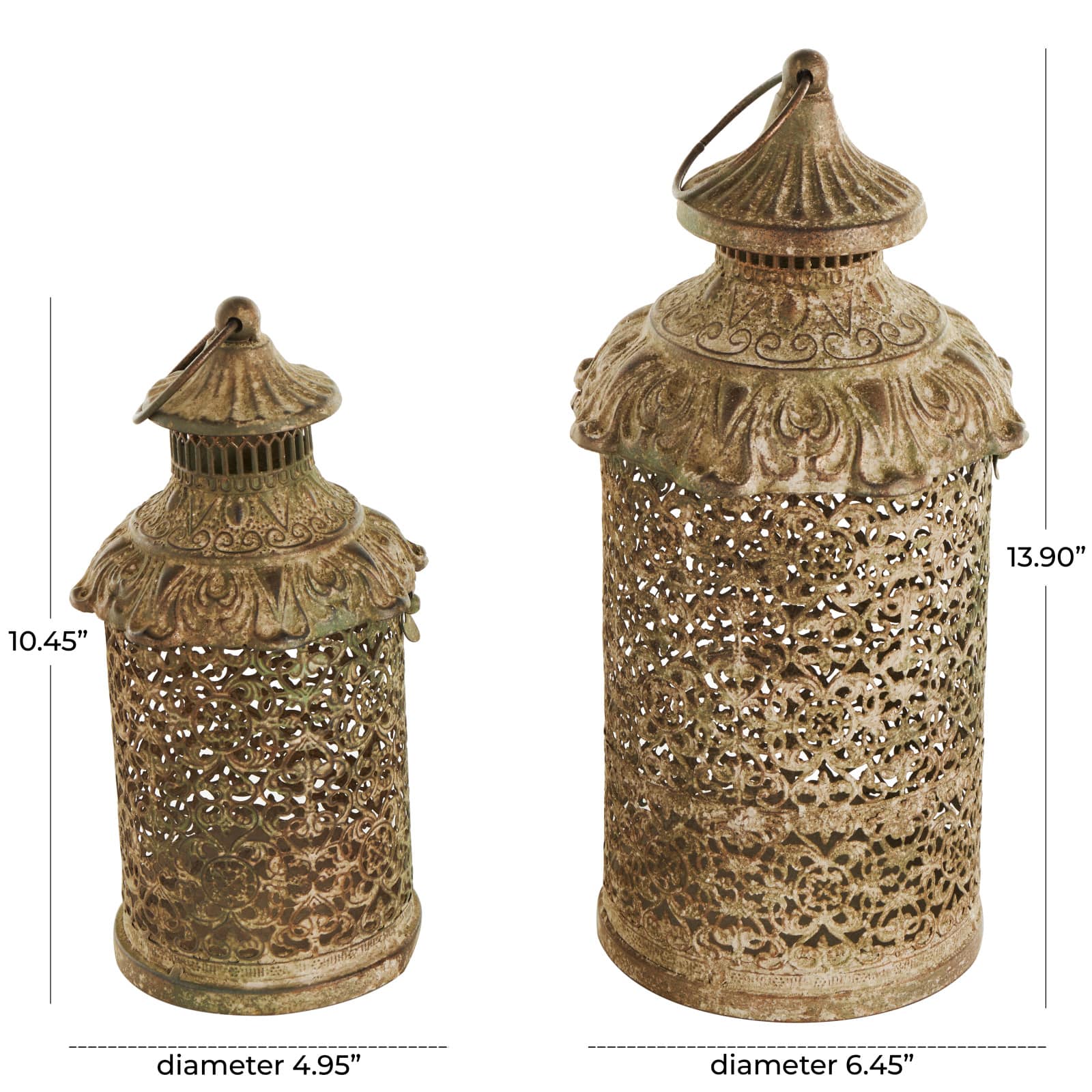 Brown Ornate Scroll Metal Candle Lantern Set