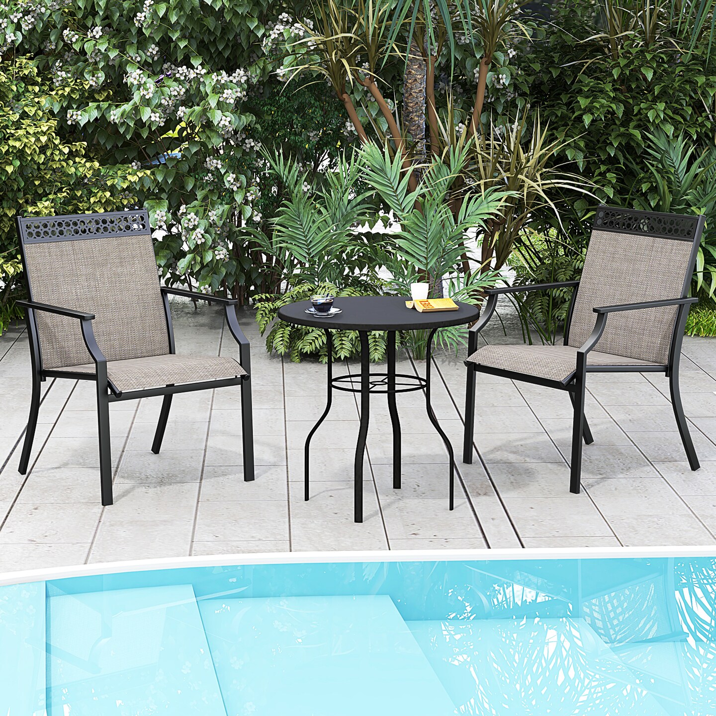 Brown Outdoor Patio Chairs 2-Pack Fabric Seat Metal Frame Weather-Resistant