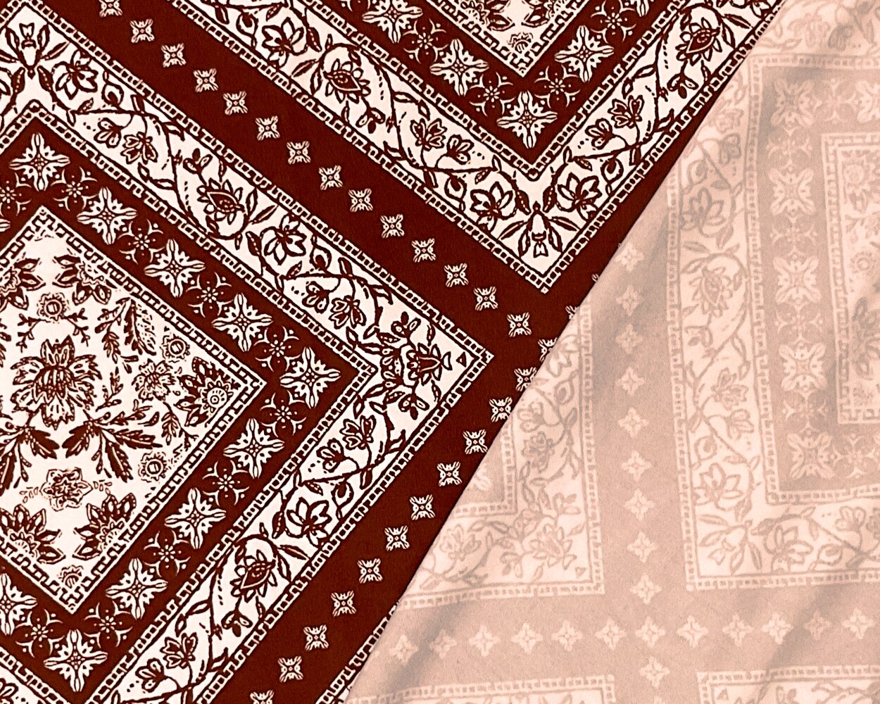 Brown Poly Stretch Spandex Floral Diamond Print DB Jersey Knit Fabric By the Yard