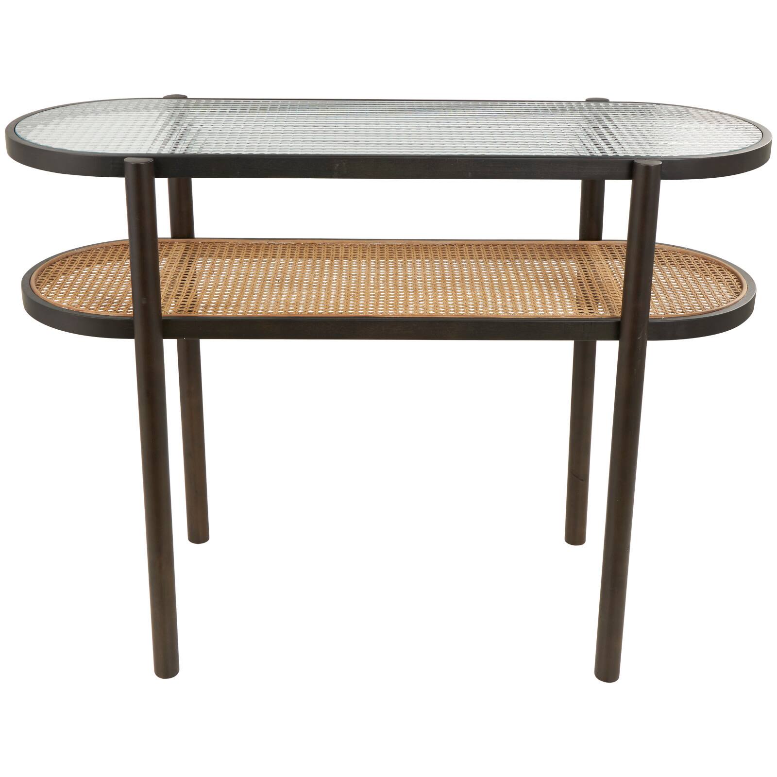 Brown Rattan Console Table with Pressed Tempered Glass Top