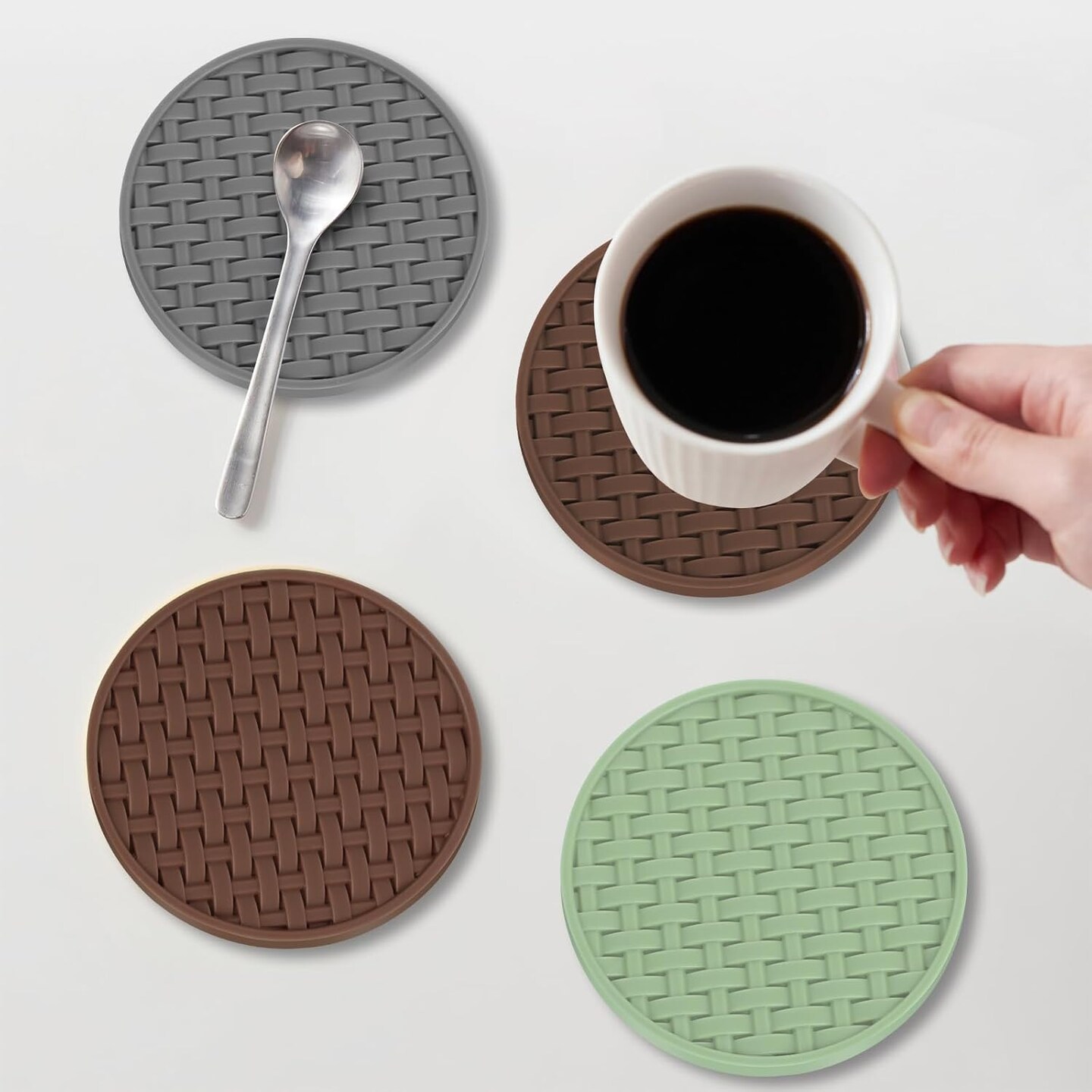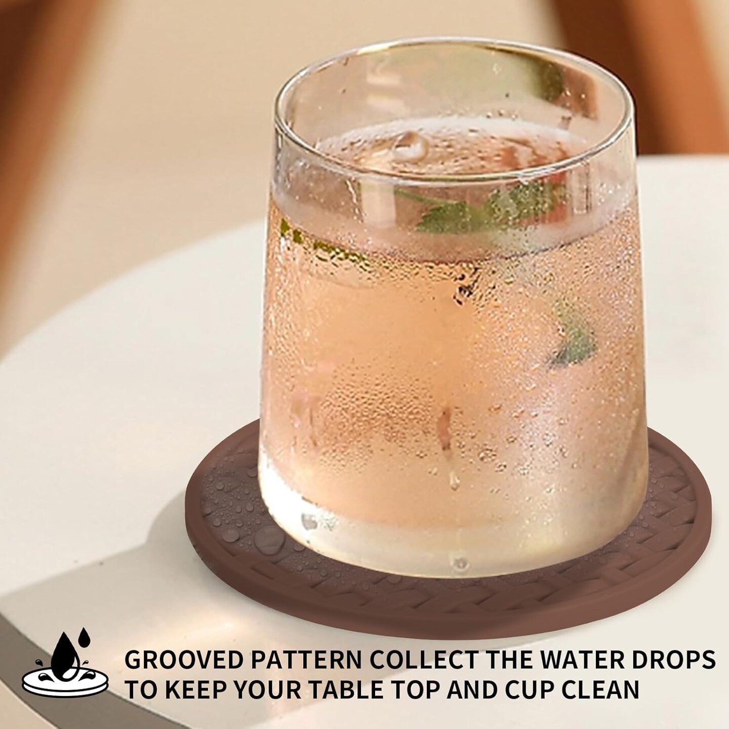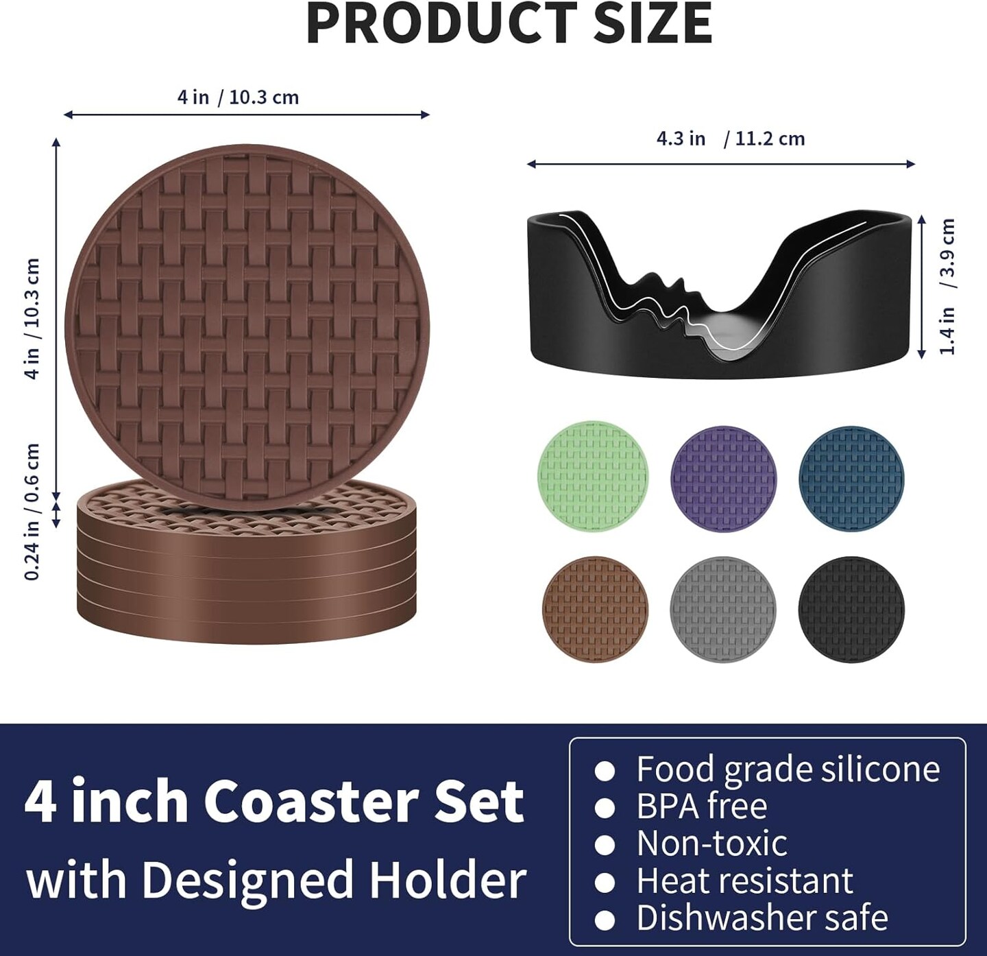 Brown Silicone Coasters 6 Packs with Holder, Heat Resistant & Waterproof Cup Mats, 4 Inches Non-Slip Decorative Coster Set for Home, Office, Kitchen, Coffee Bar Table