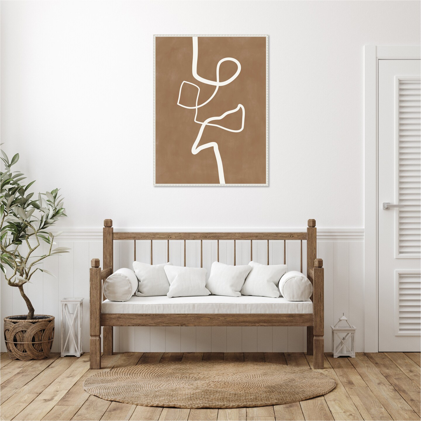 Brown Single Line Artwork by Elena Ristova Framed Canvas Wall Art
