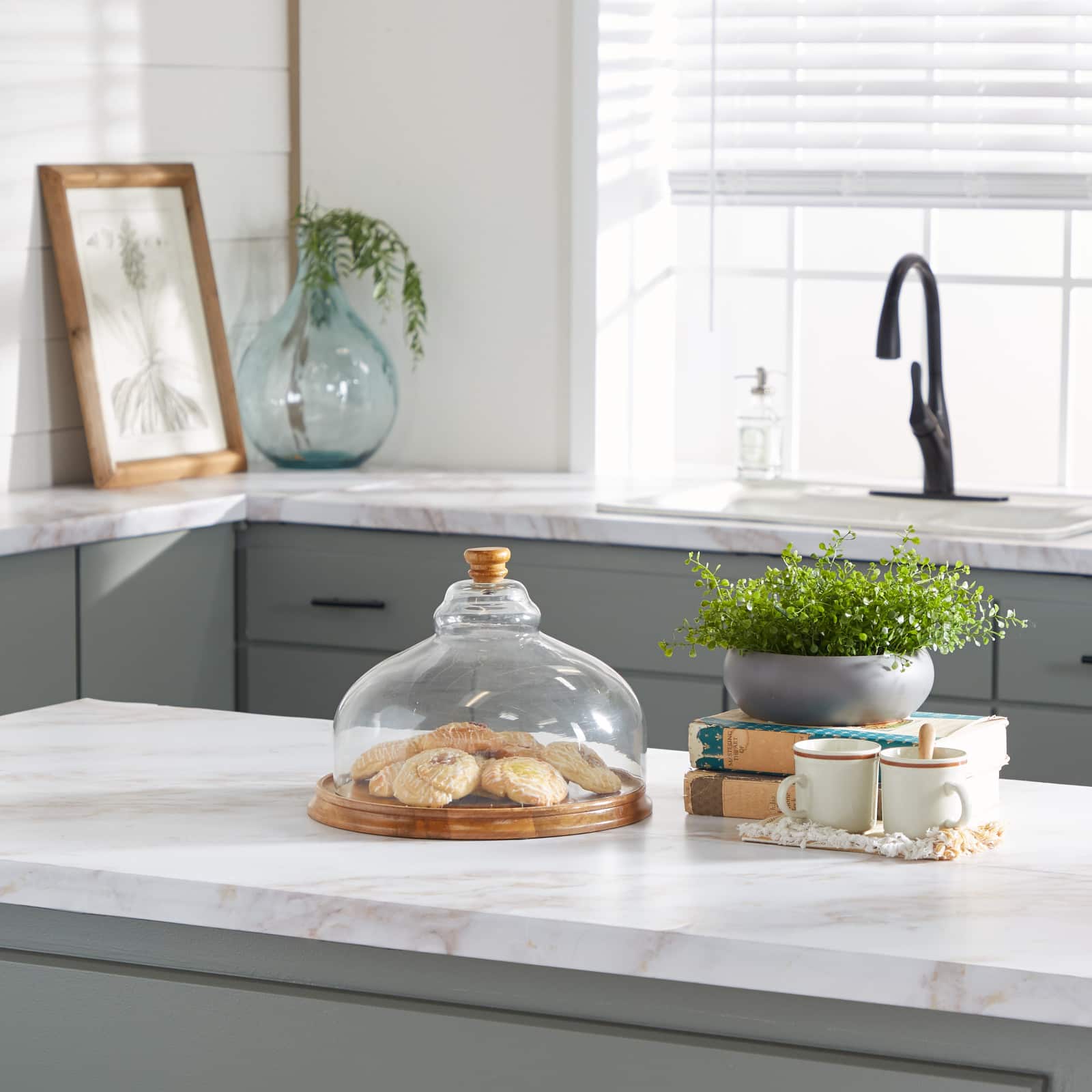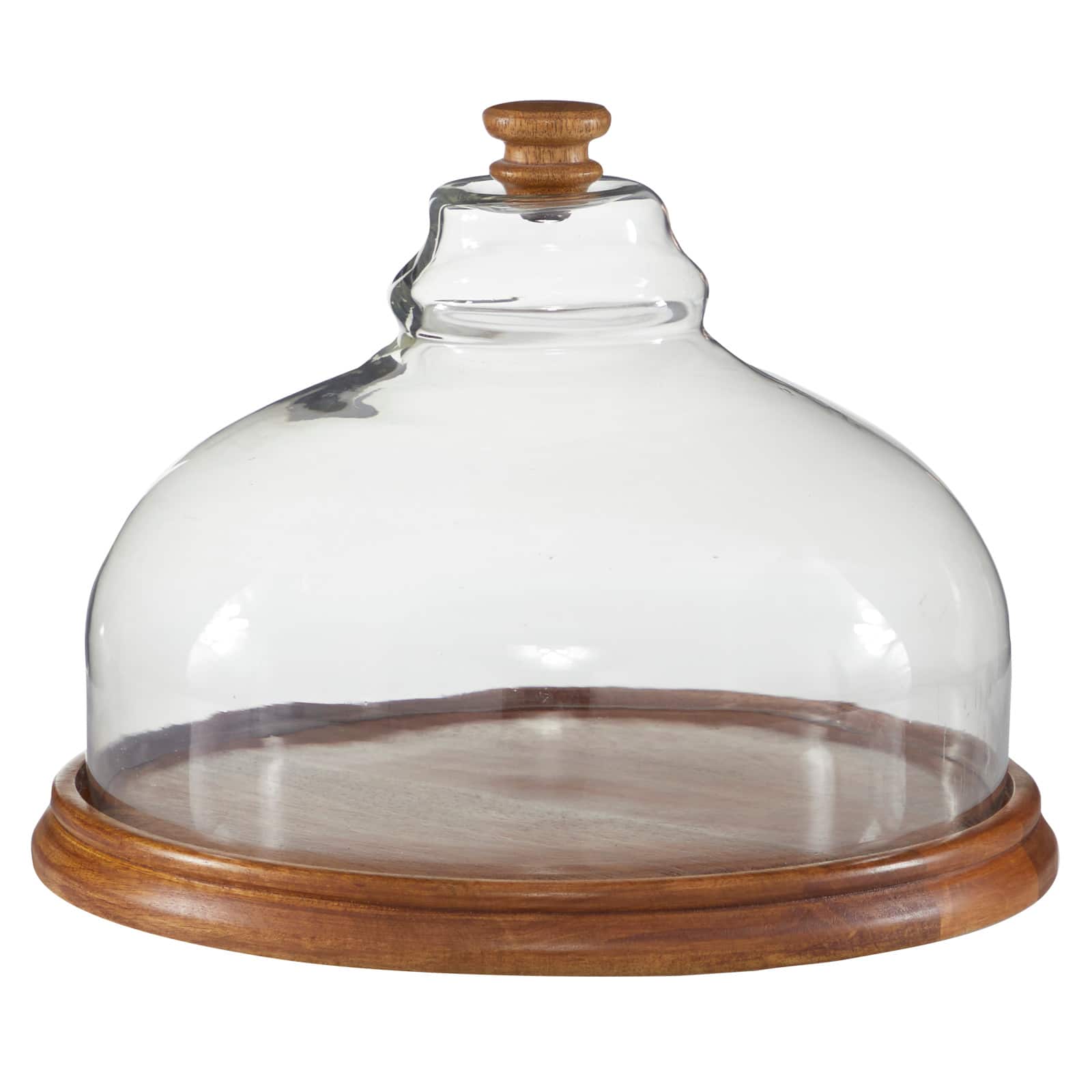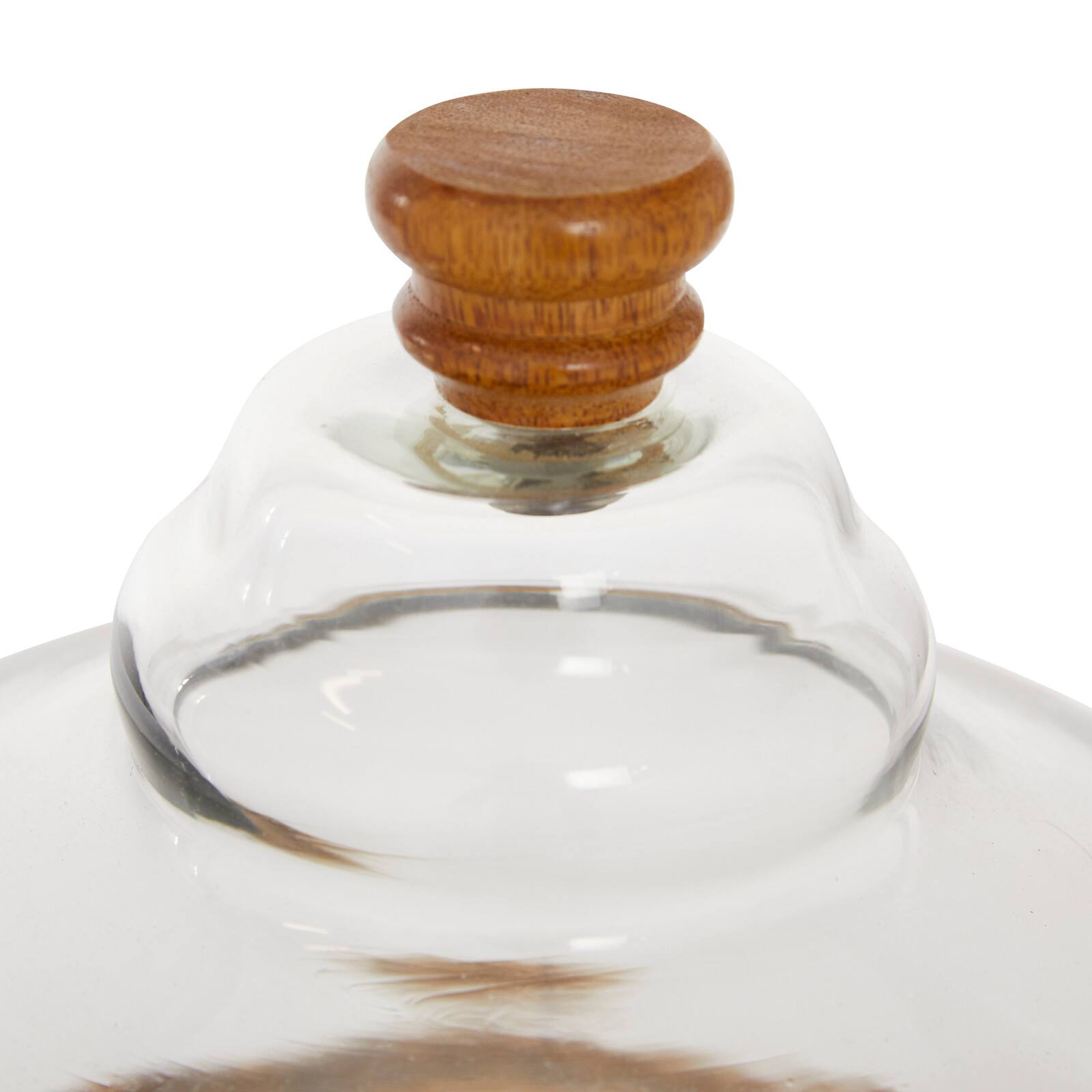 Brown Wood and Glass Natural Cake Stand with Cloche, 10" x 13" x 13"