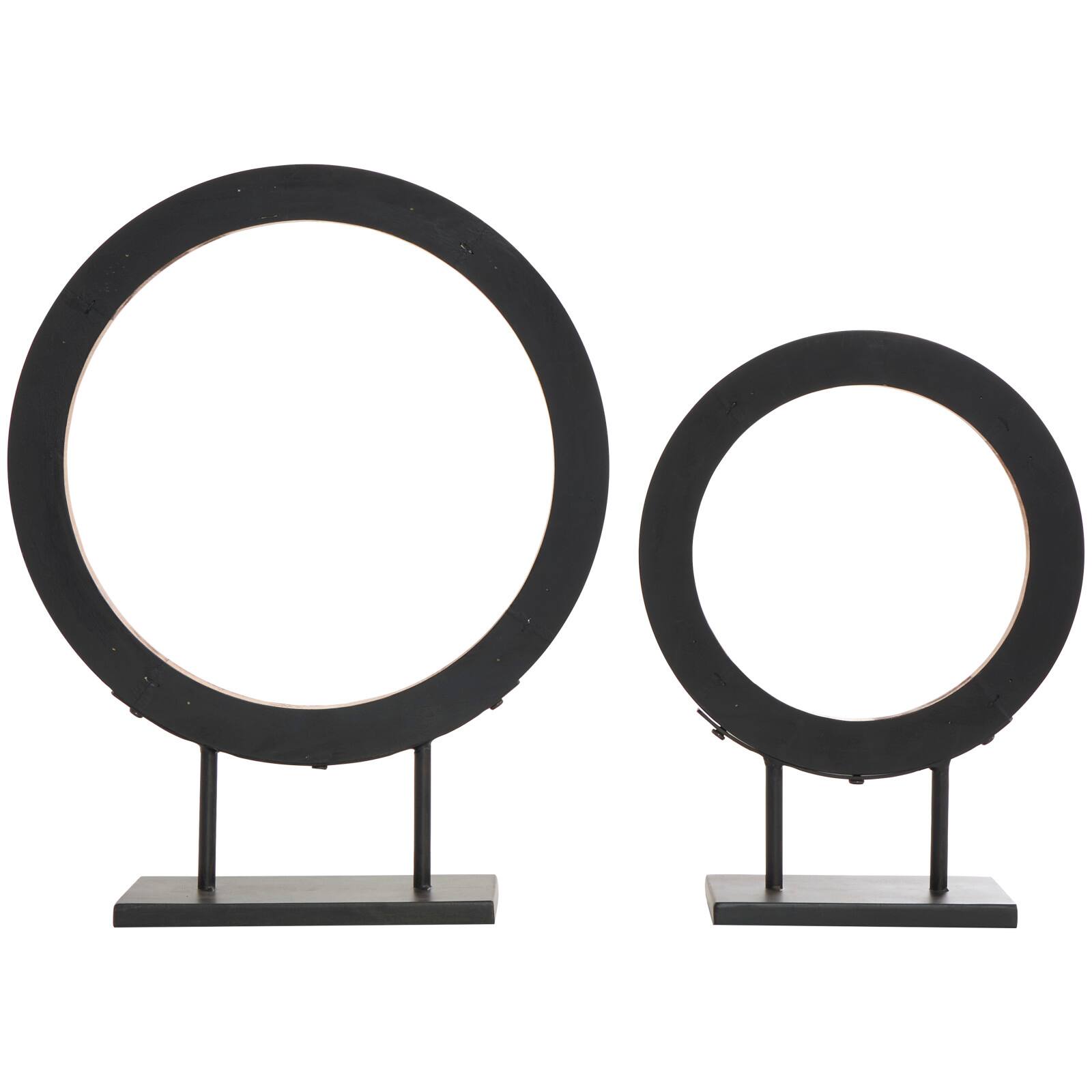 Brown Wood Geometric Circular Ring Sculpture Set