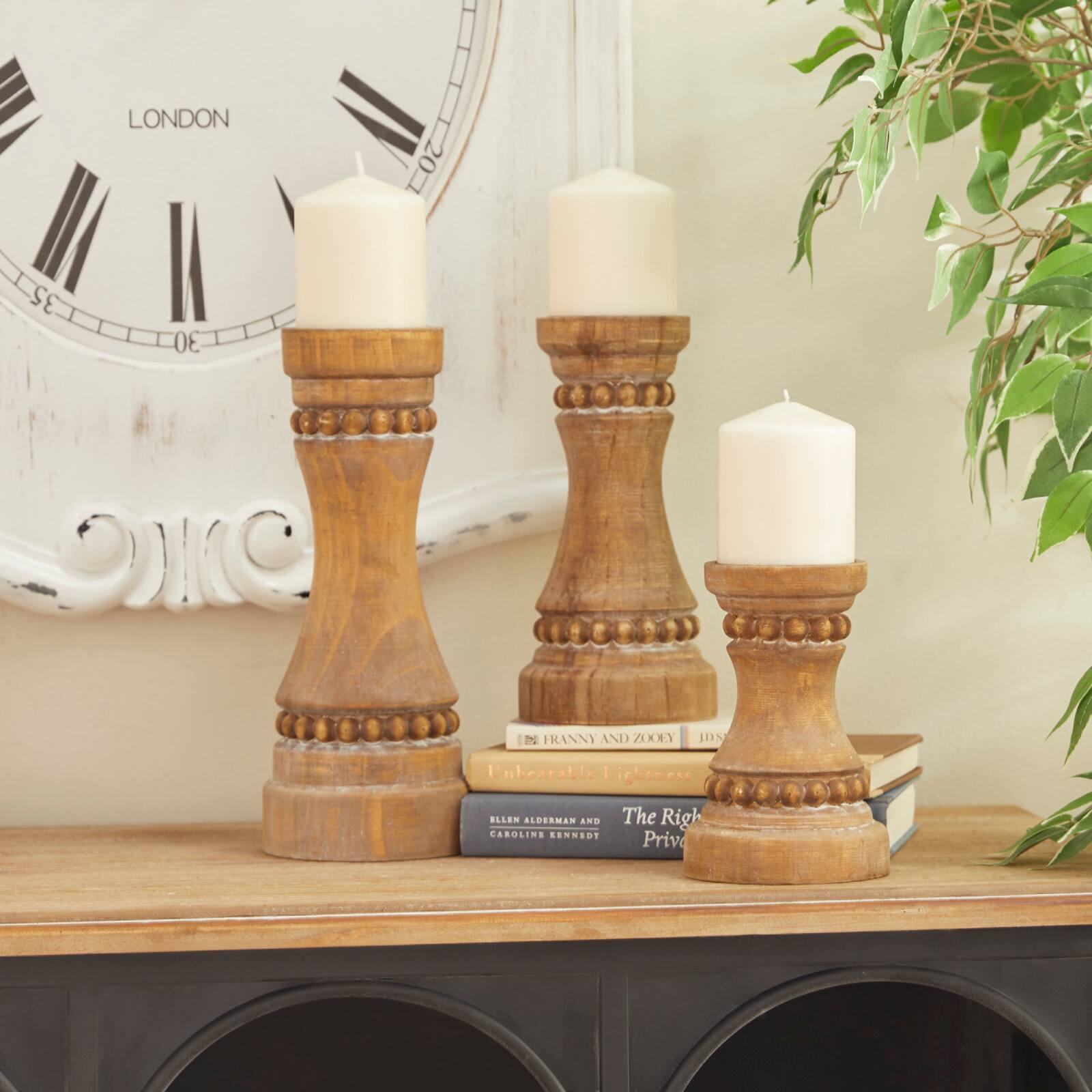 Brown Wood Natural Candle Holder Set