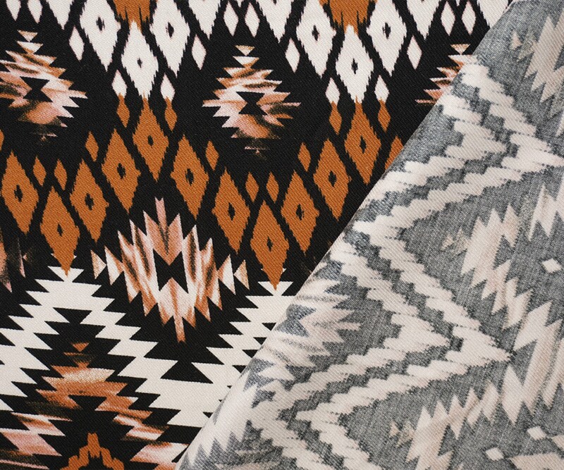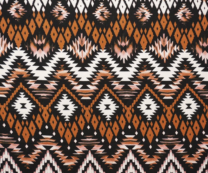 Brown-Black-Multi Rayon Aztec Printed Twill Woven Fabric By the Yard