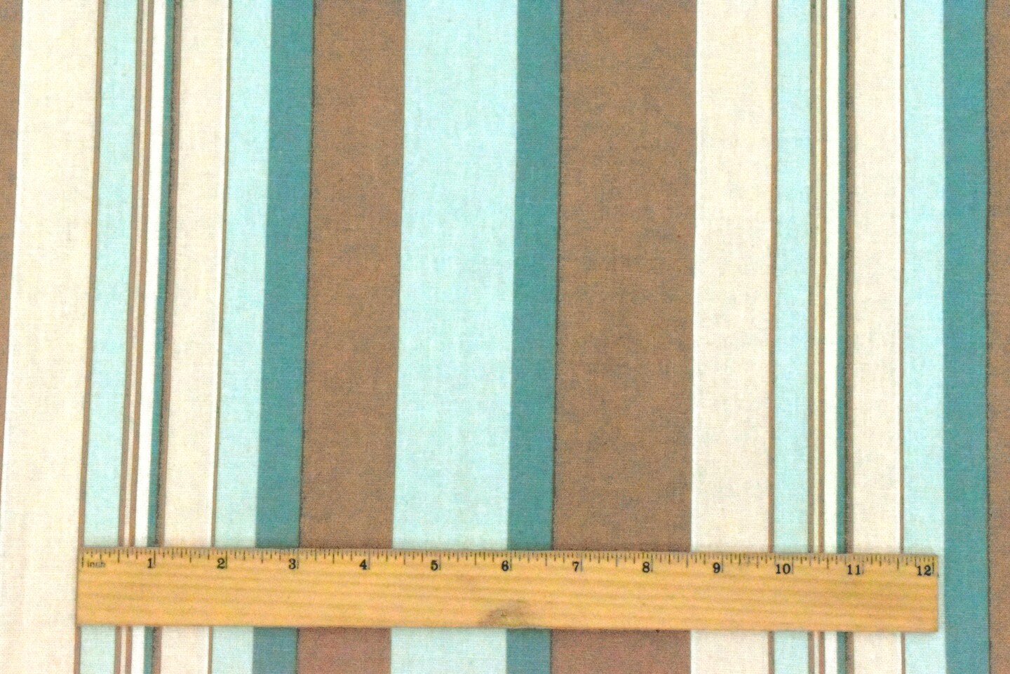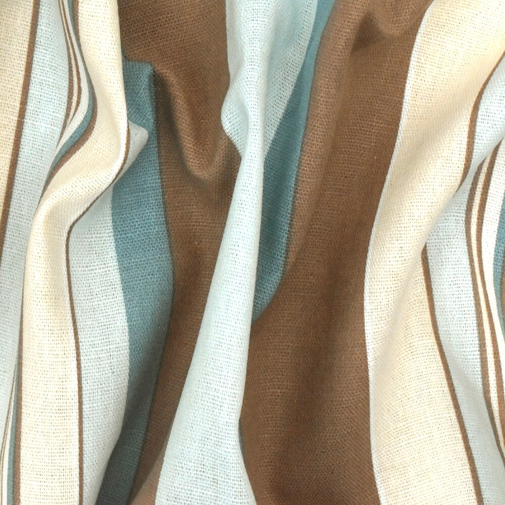 Brown-Blue-Multi Stripe Printed Slub Cotton Woven Shirting Fabric By the Yard