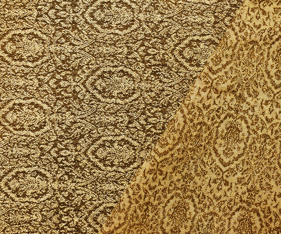 Brown-Gold Rayon-Poly Baroque Bengaline Jacquard Woven Fabric By the Yard