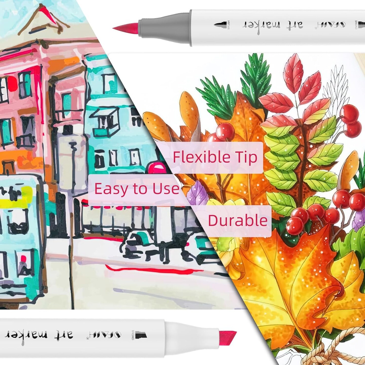 Brush Tip Alcohol Markers Set - 72 Colors Double Tipped Art Markers for Artist Adult Coloring Illustration, Gifts for Artist Adult, Dual Tip Brush & Chisel - Refillable Ink