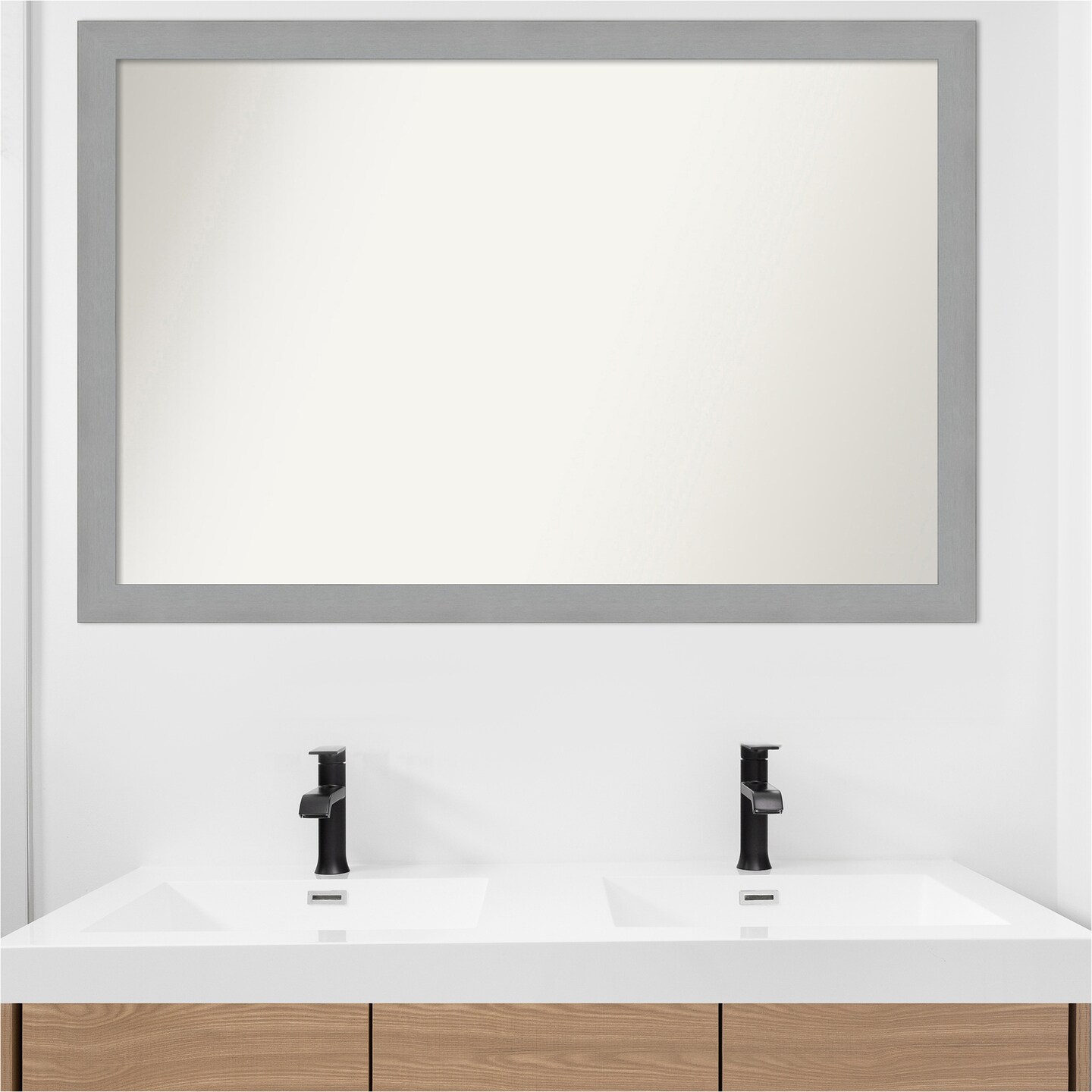 Brushed Nickel Non-Beveled Custom Framed Bathroom Vanity Wall Mirror
