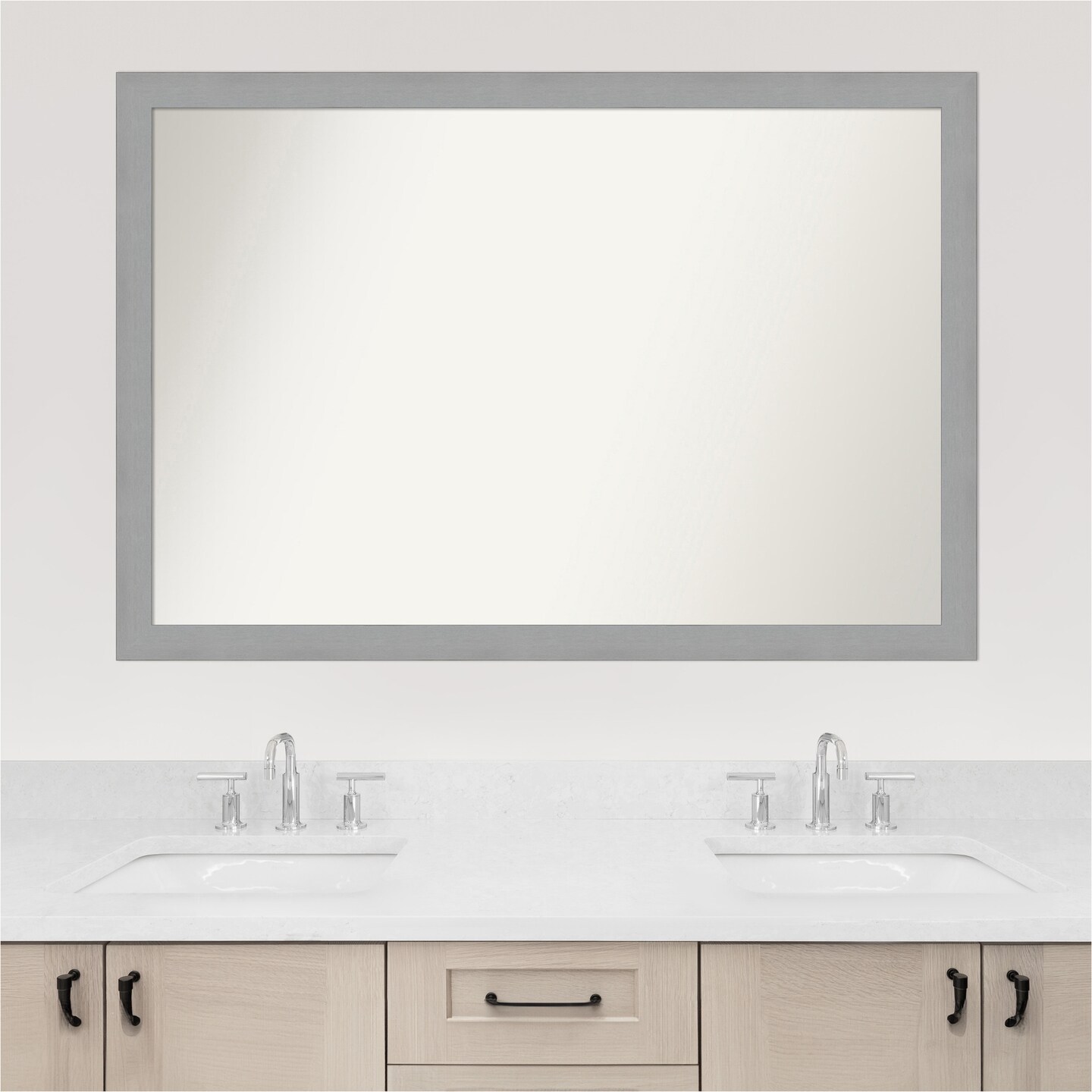 Brushed Nickel Non-Beveled Custom Framed Bathroom Vanity Wall Mirror
