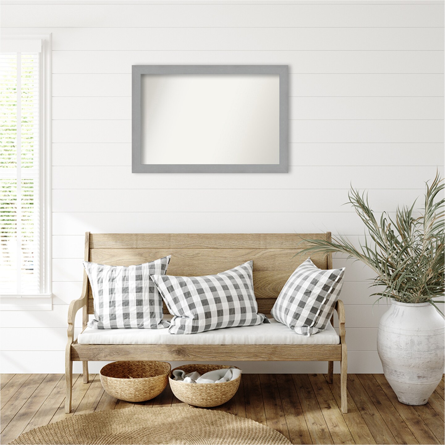 Brushed Nickel Non-Beveled Custom Framed Bathroom Vanity Wall Mirror