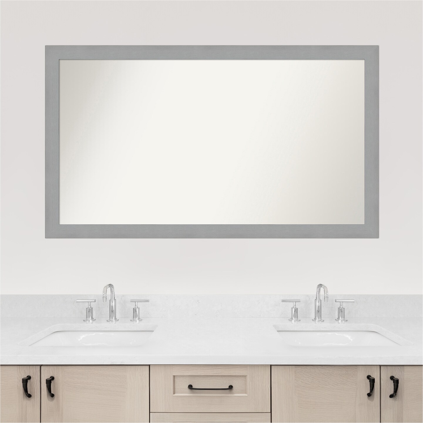 Brushed Nickel Non-Beveled Custom Framed Bathroom Vanity Wall Mirror
