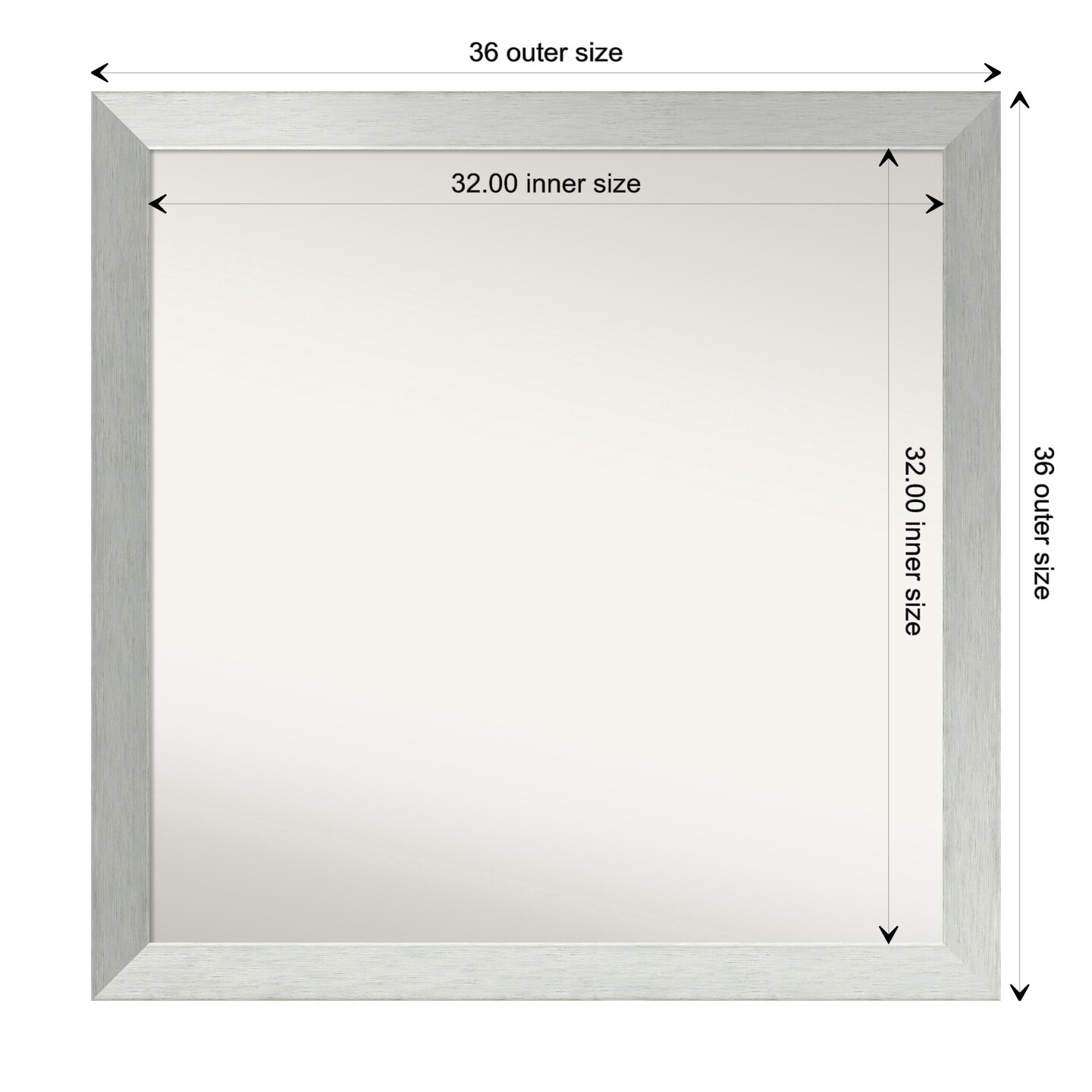 Brushed Sterling Silver Non-Beveled Custom Framed Bathroom Vanity Wall Mirror