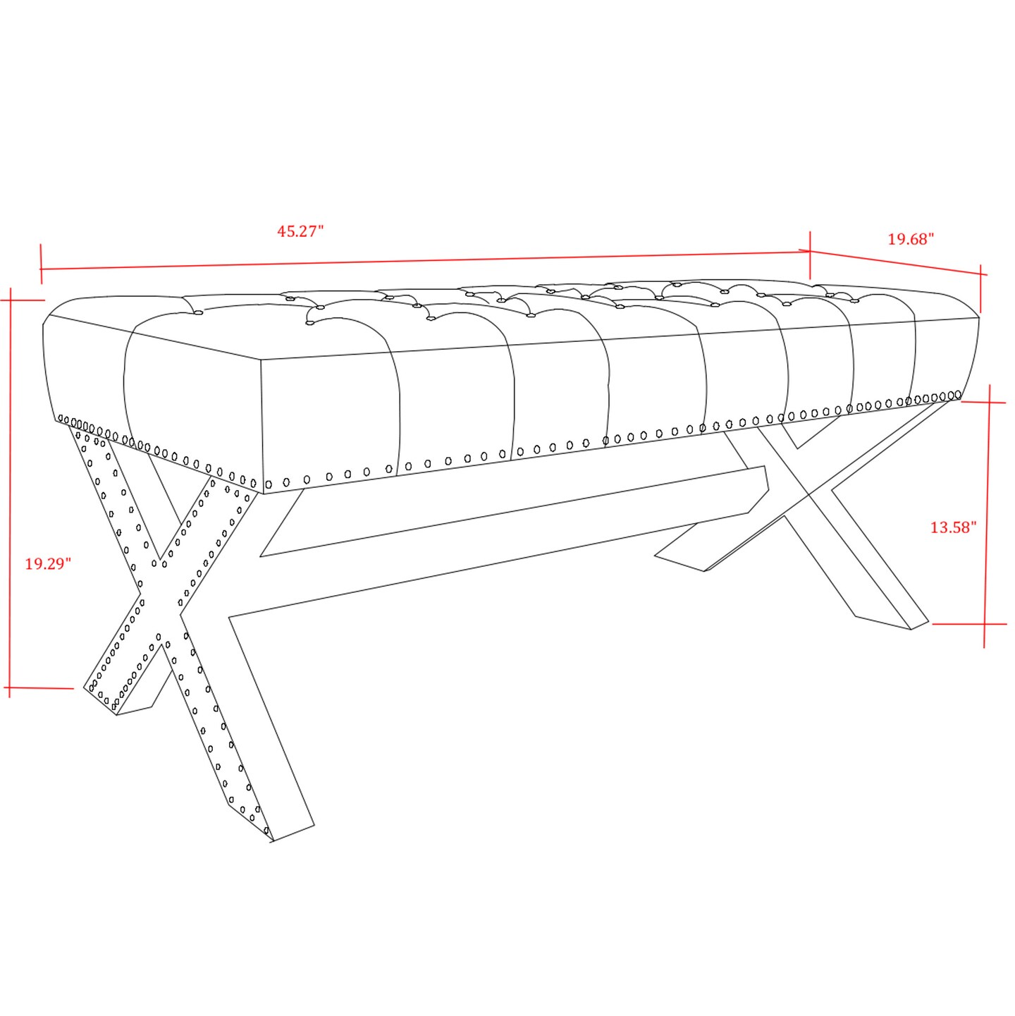 Bryoni Linen/Velvet Button Tufted Silver Nailhead Trim X-Leg Bench