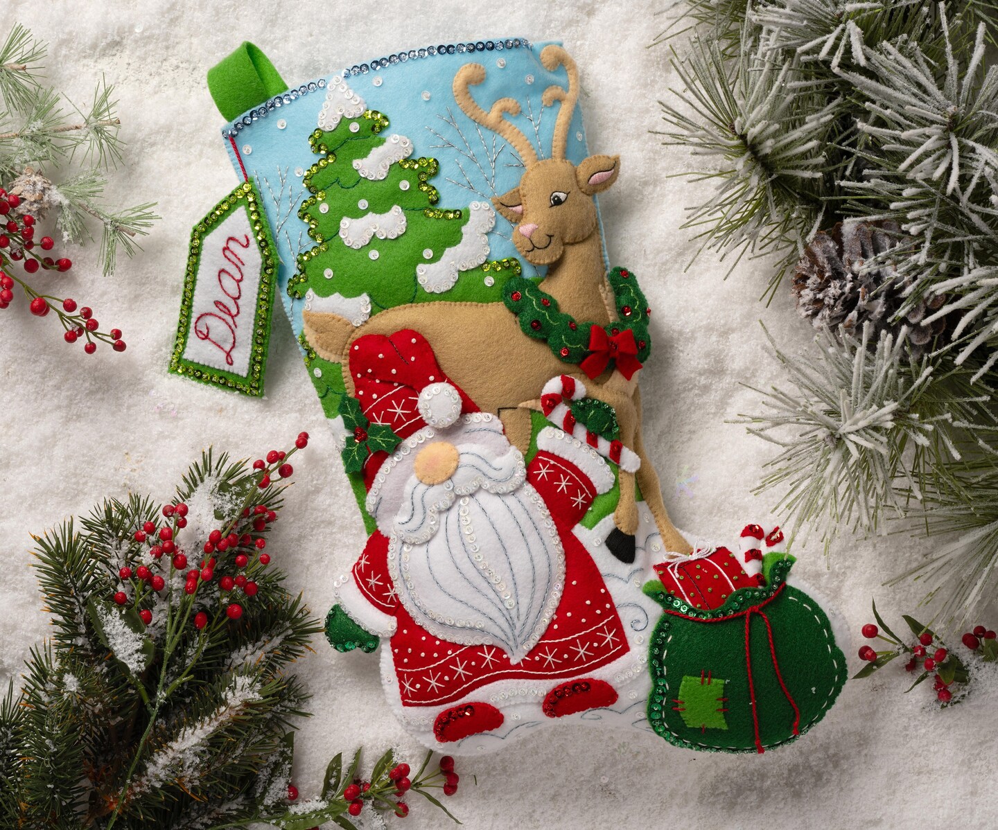 Bucilla Felt Stocking Applique Kit 18" Long-Gnomes Snowy Surprise