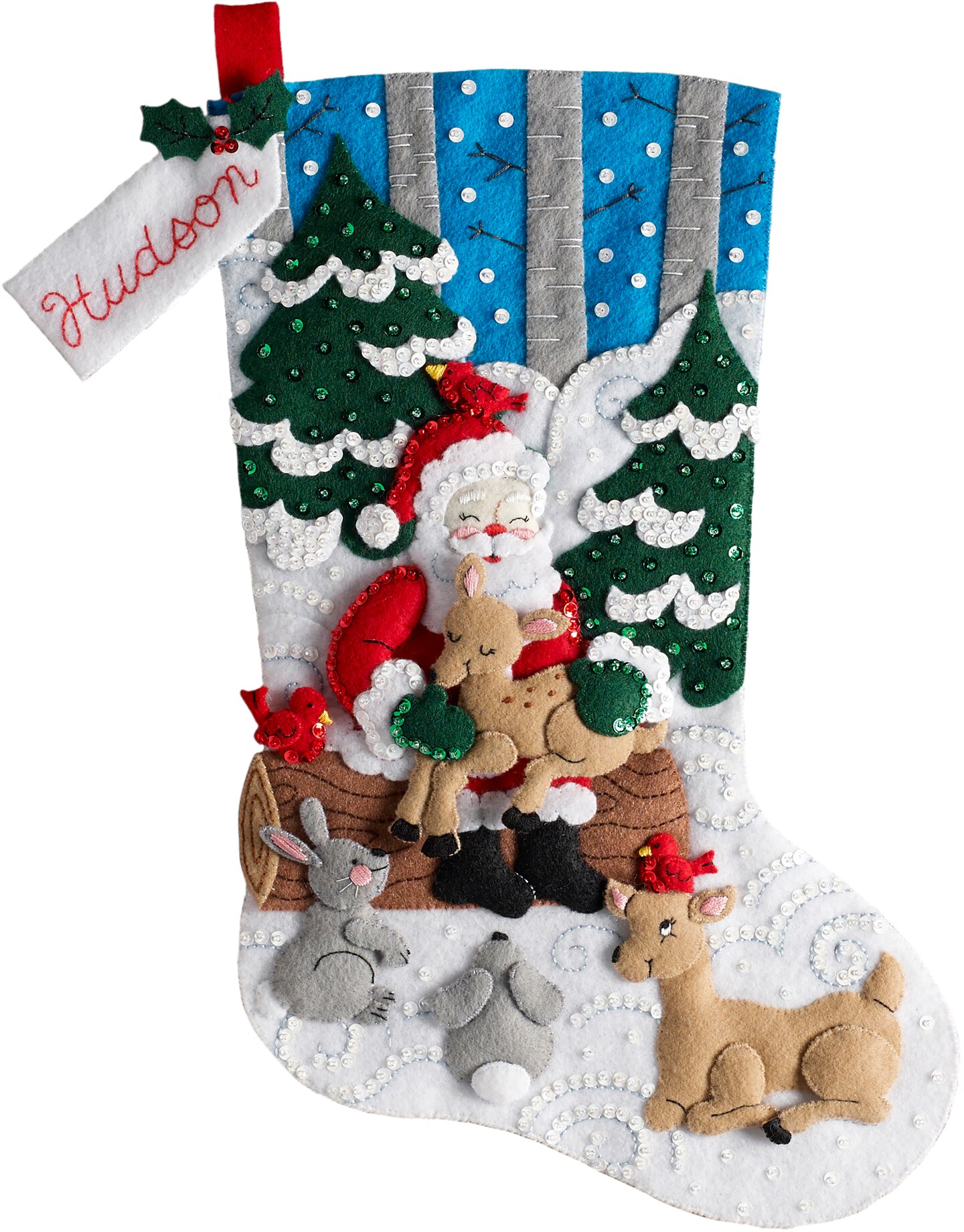 Bucilla Felt Stocking Applique Kit 18" Long-Santa's Forest Family