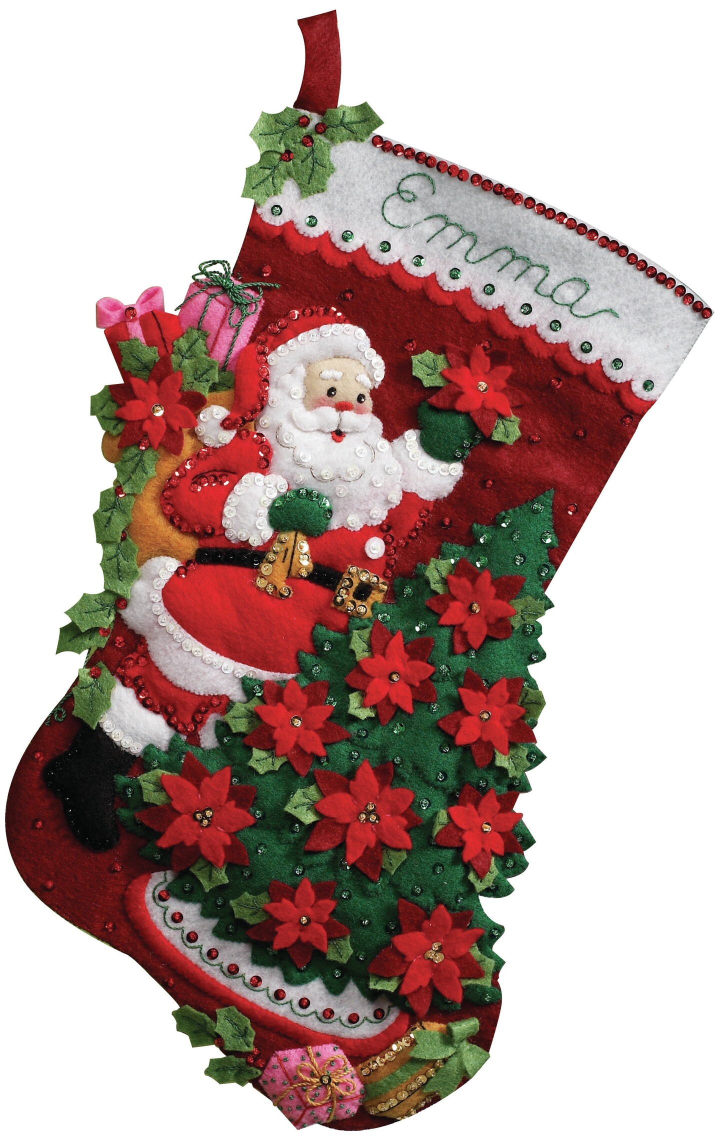 Bucilla Felt Stocking Applique Kit 18" Long-Santa Poinsettia Tree