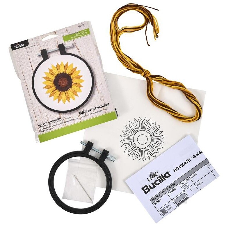 Bucilla Stamped Embroidery Kit W/3" Plastic Hoop-Golden Sunflower