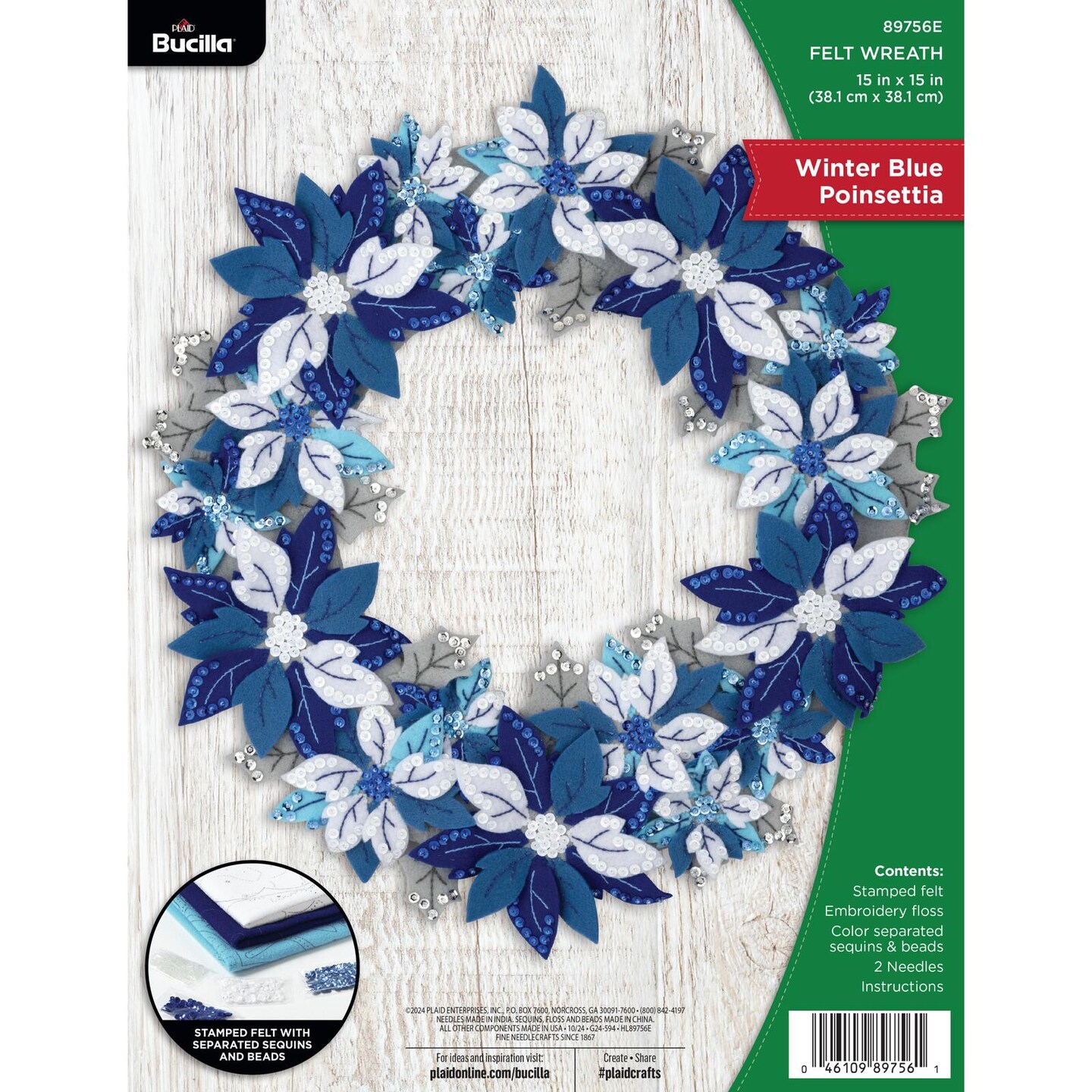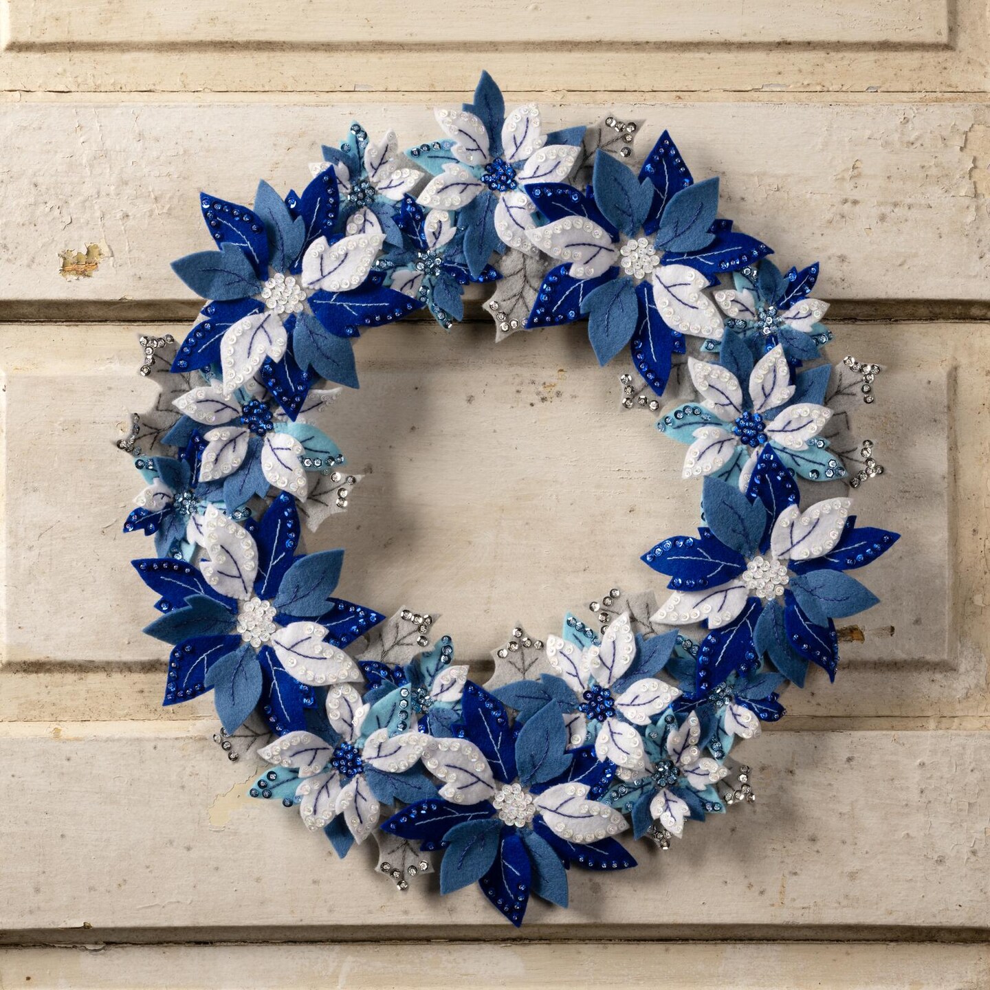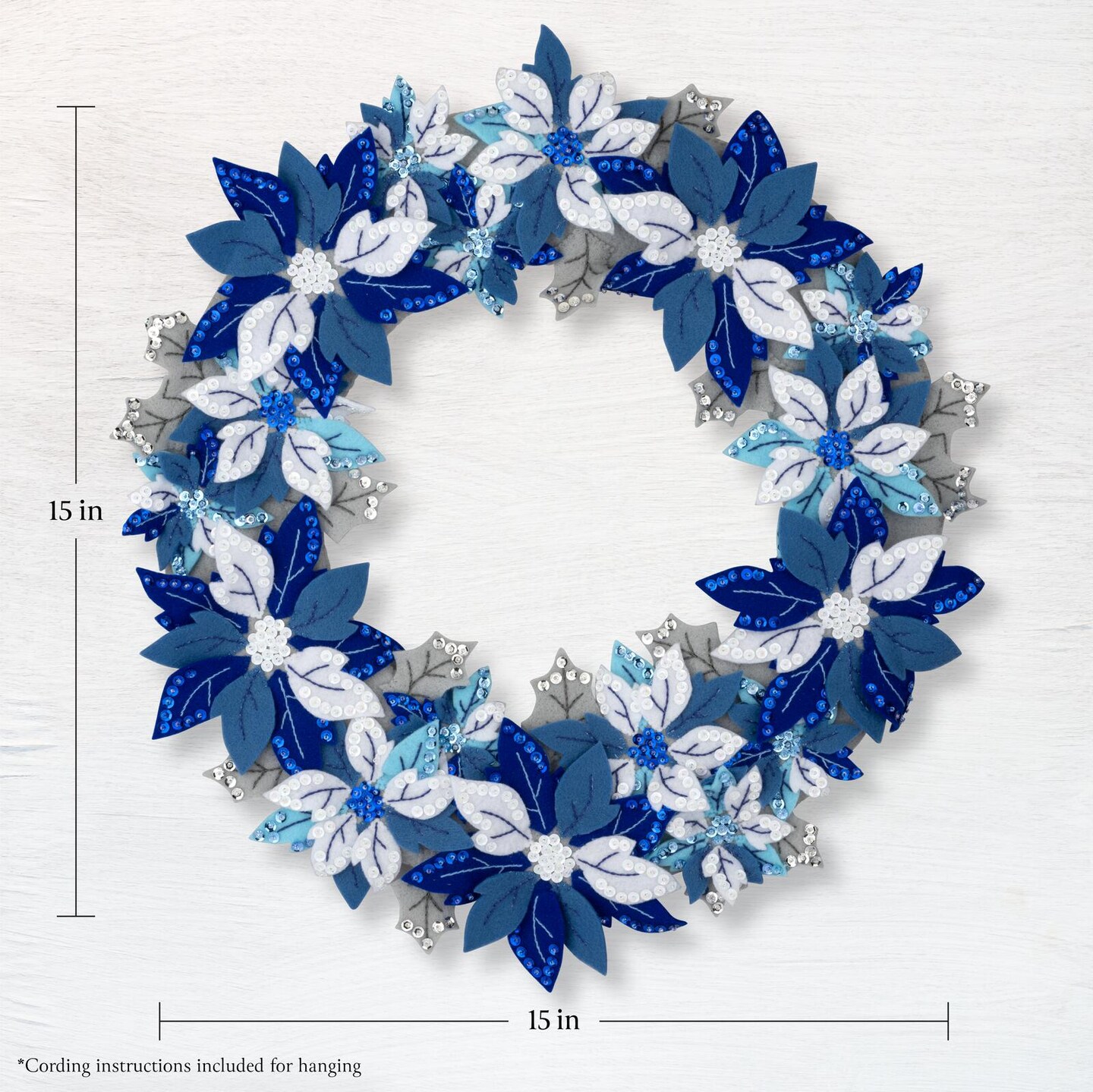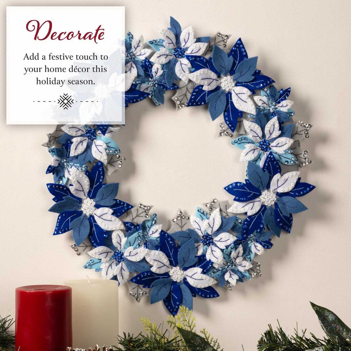 Bucilla® Winter Blue Poinsettia Wreath - Seasonal Felt Home Decor - 89756E