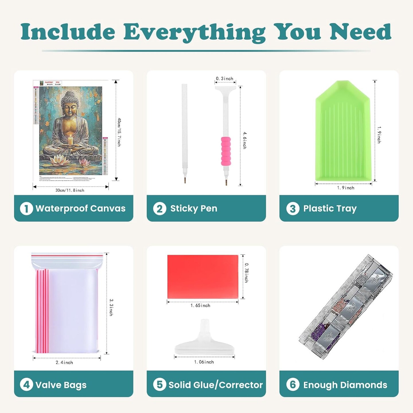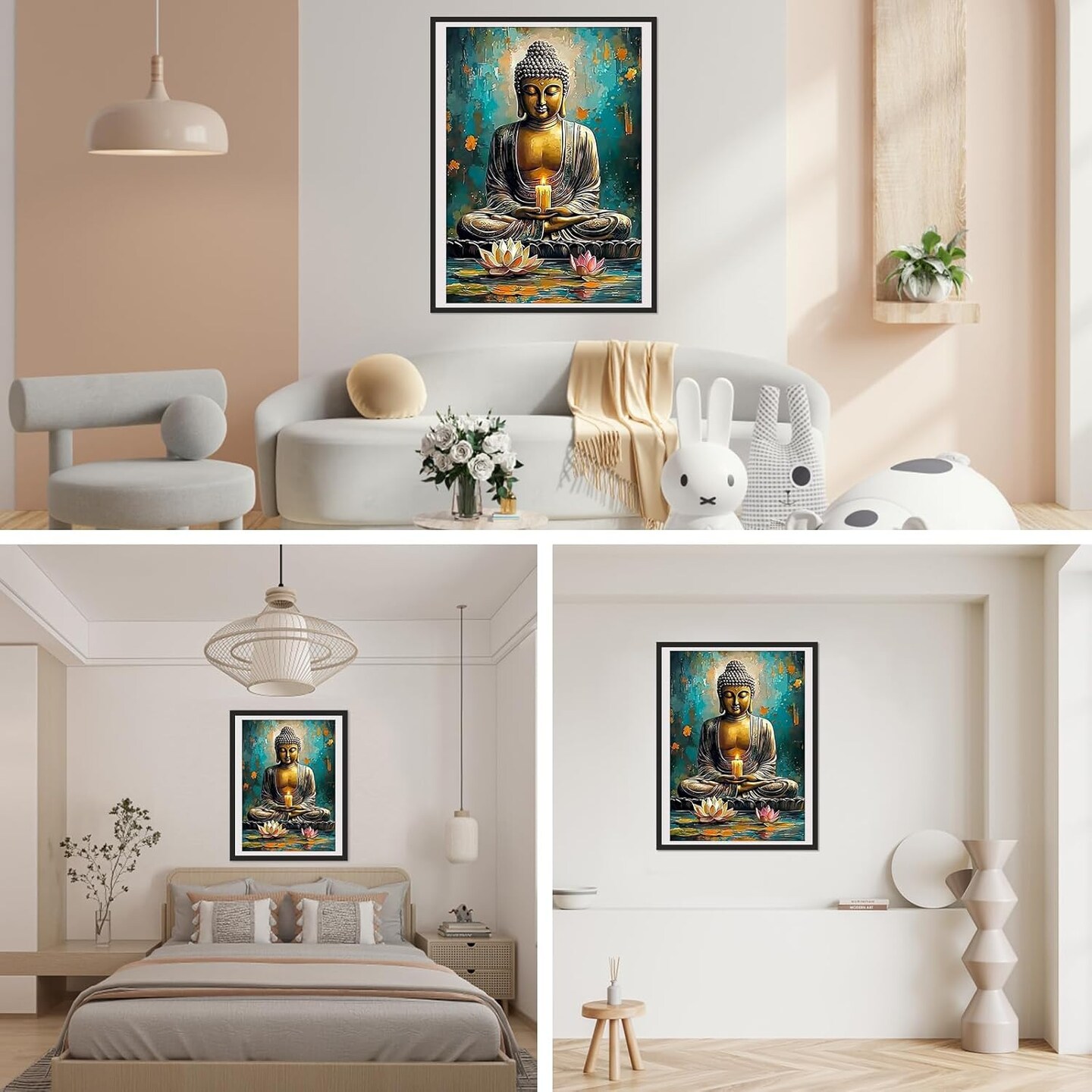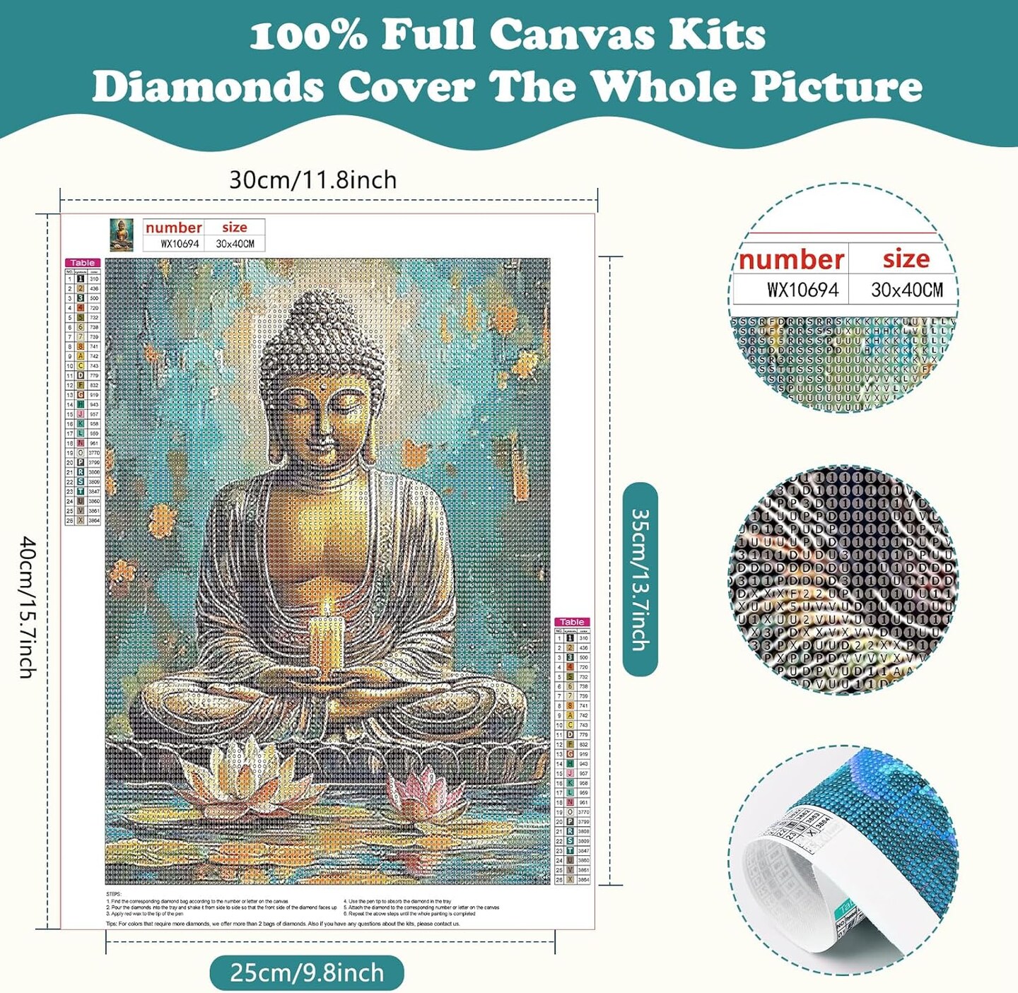 Buddha Diamond Art Kits for Adults, DIY 5D Lotus Diamond Painting Kits for Beginners, Round Full Drill Diamond Dots Paintings, Diamonds Pictures Gem Art for Adults Crafts Home Decor 12x16inch