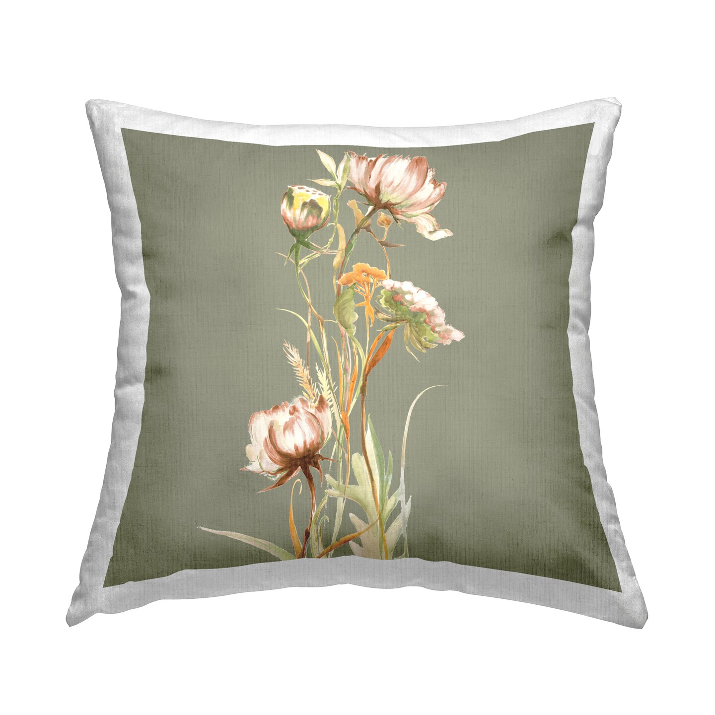Budding Cottage Flowers Design by Liz Jardine Throw Pillow