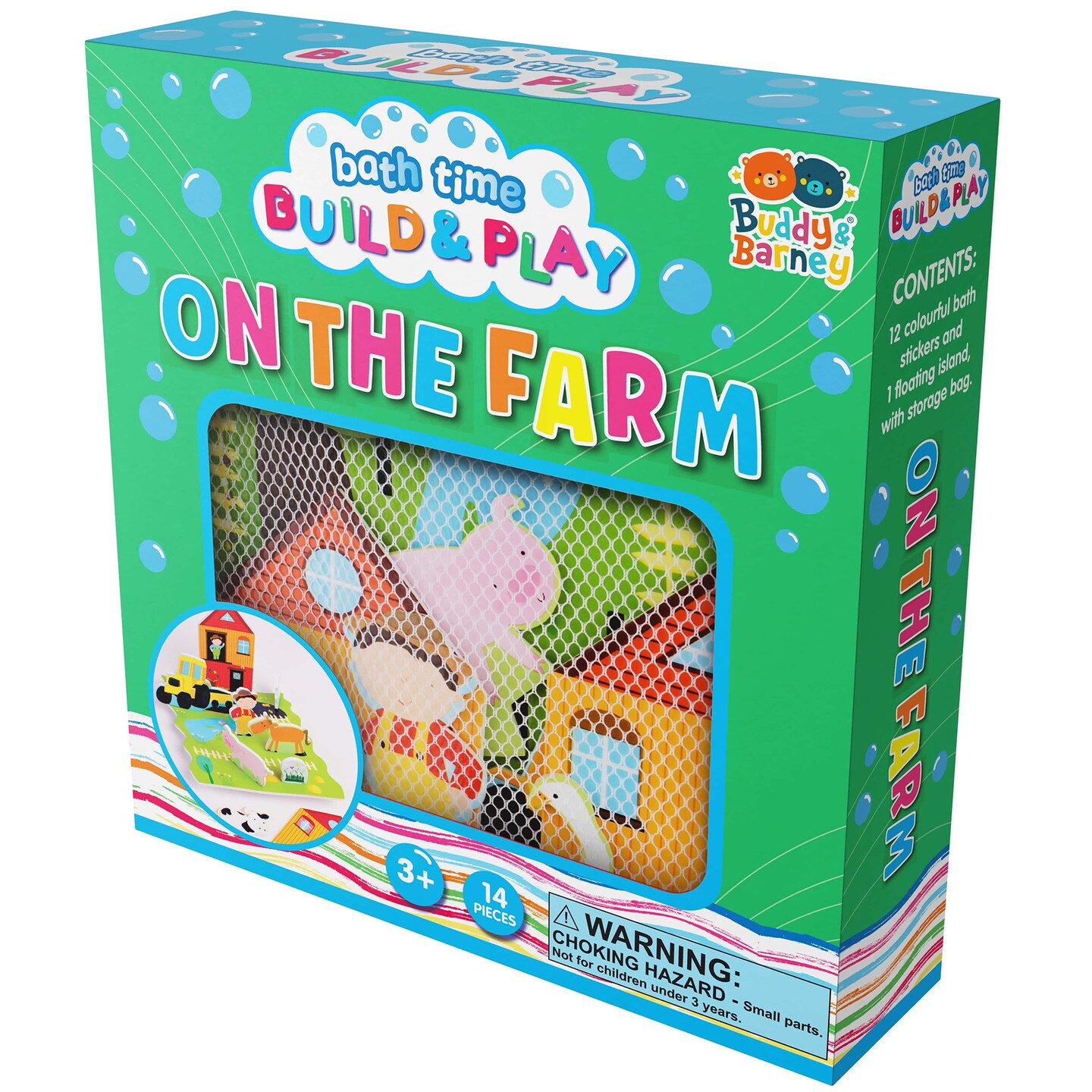 Buddy & Barney: Bath Time: Build & Play - On The Farm - Floating 3D Foam Stickers, Interactive Animal Scene, Suction Cup Mesh Bag, Water Toy, Kids 3+