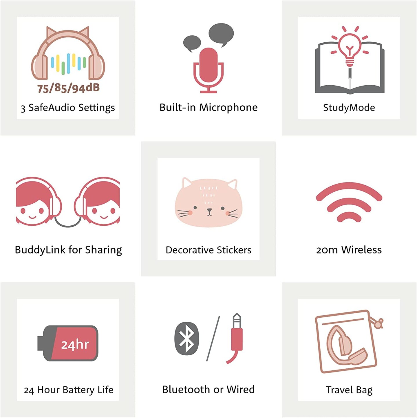 BuddyPhones Play Ears Plus, CAT ears color rose