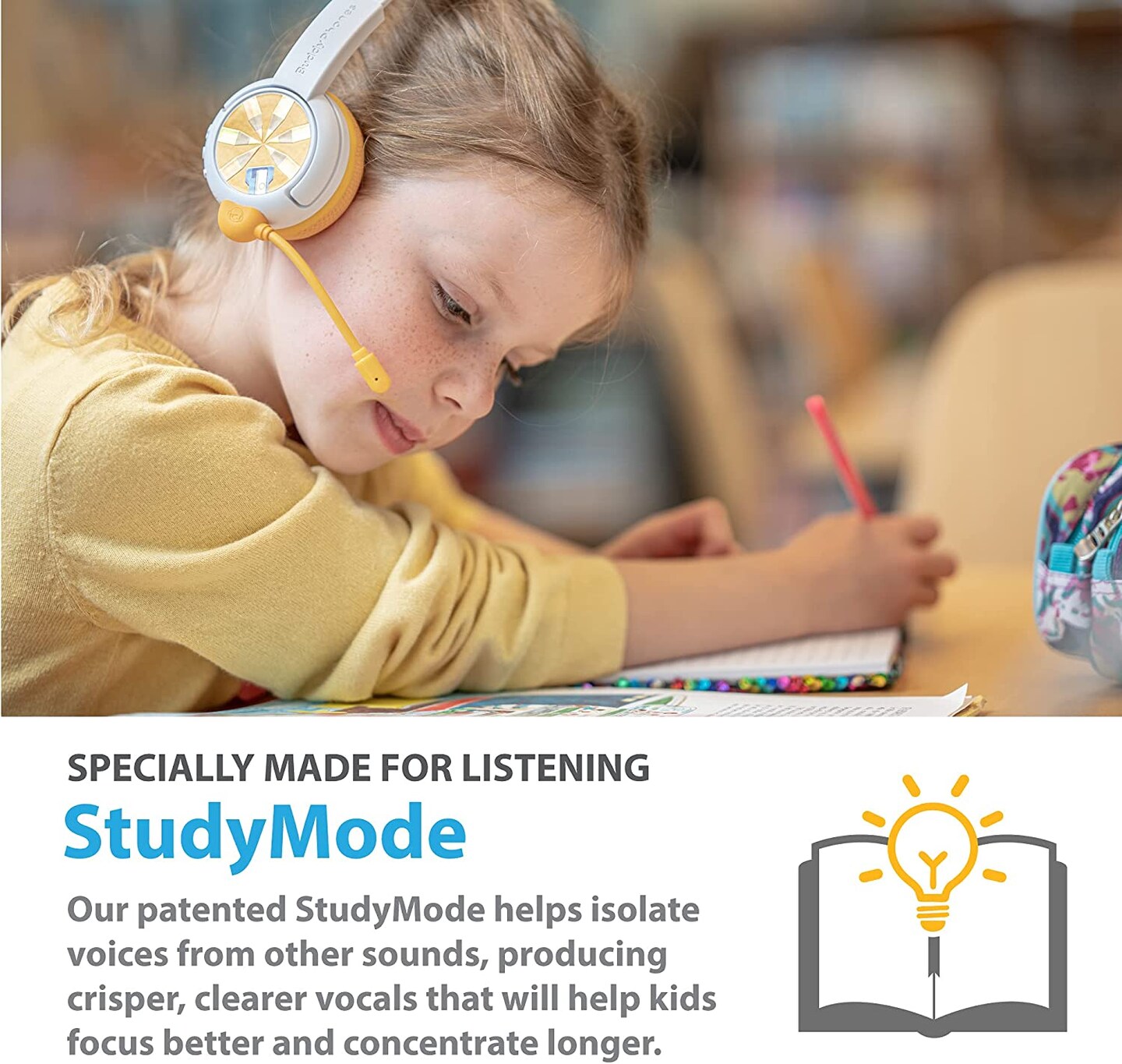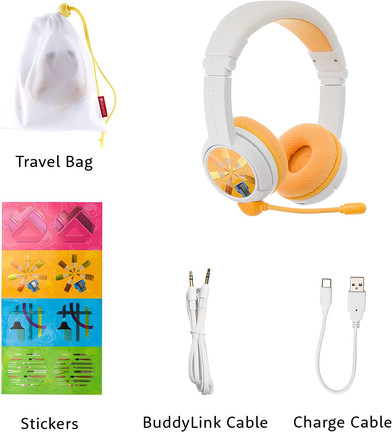 BuddyPhones Wireless School+ Yellow - beam mic and extra audio cable