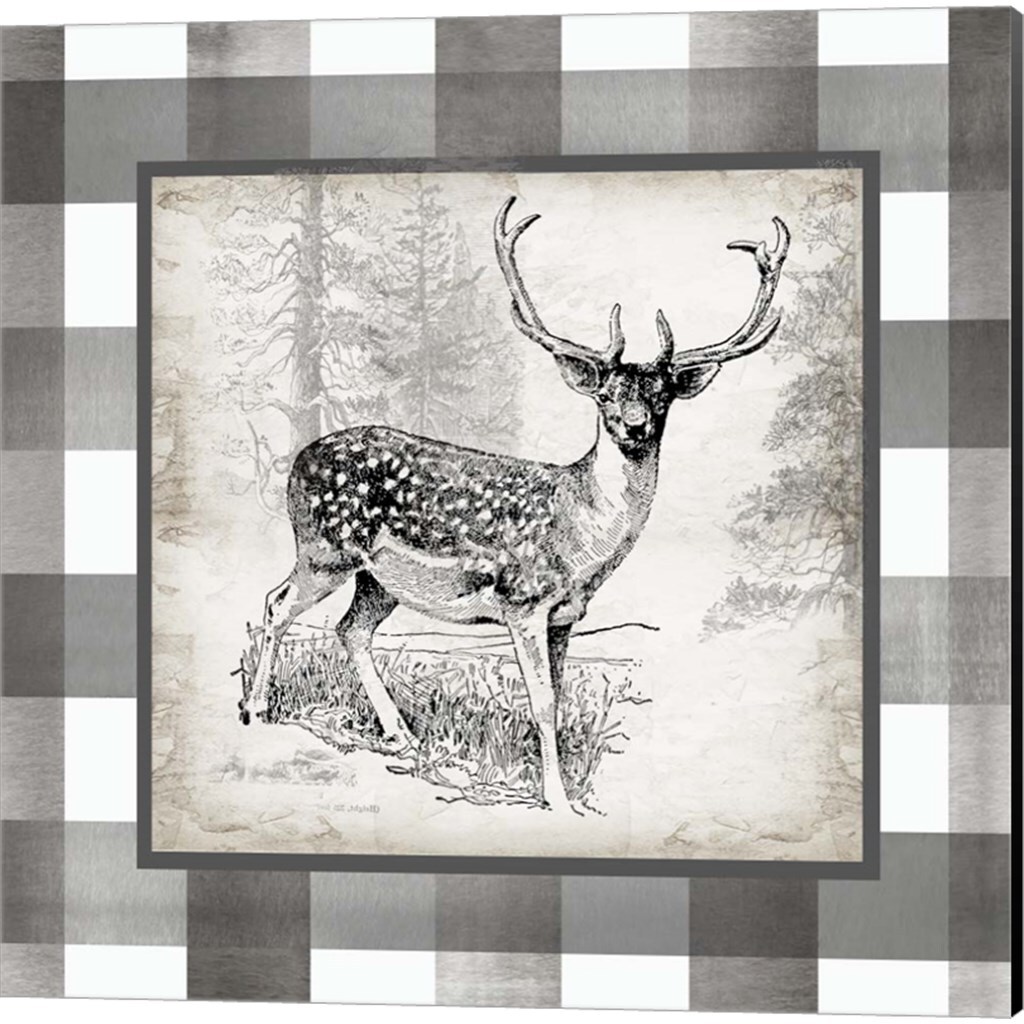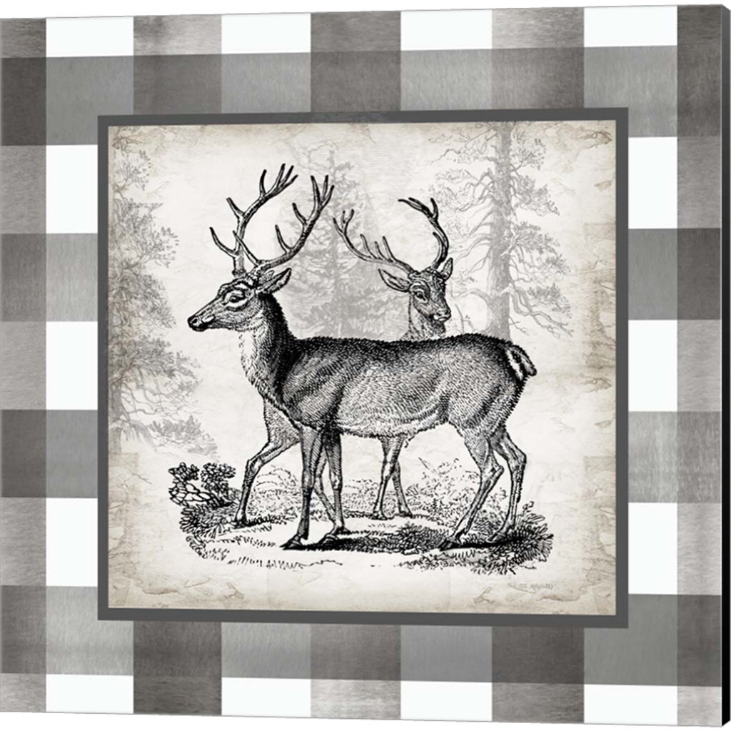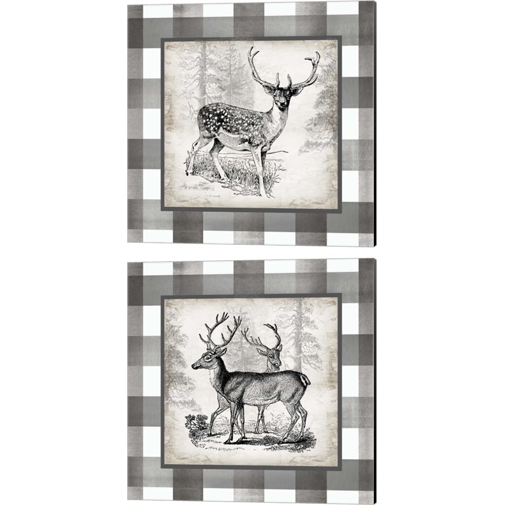 Buffalo Check Deer Neutral by Tre Sorelle Studios 14" x 14" Canvas Wall Art (Set of 2)