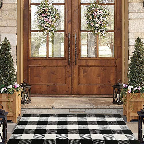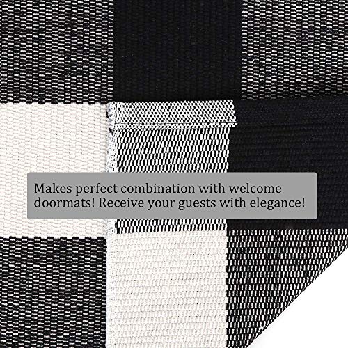 Buffalo Plaid Outdoor Rug, 27.5'' x 43'' Black and White Check Indoor/Outdoor Area Rugs, Layering Rug for Hello/Welcome Door Mat, Washable Cotton Woven Farmhouse Mat for Fall Front Porch Décor