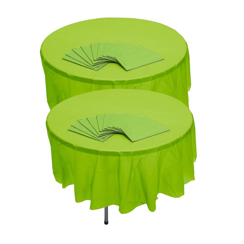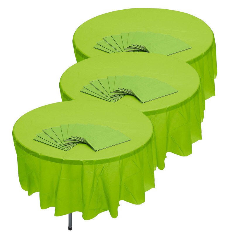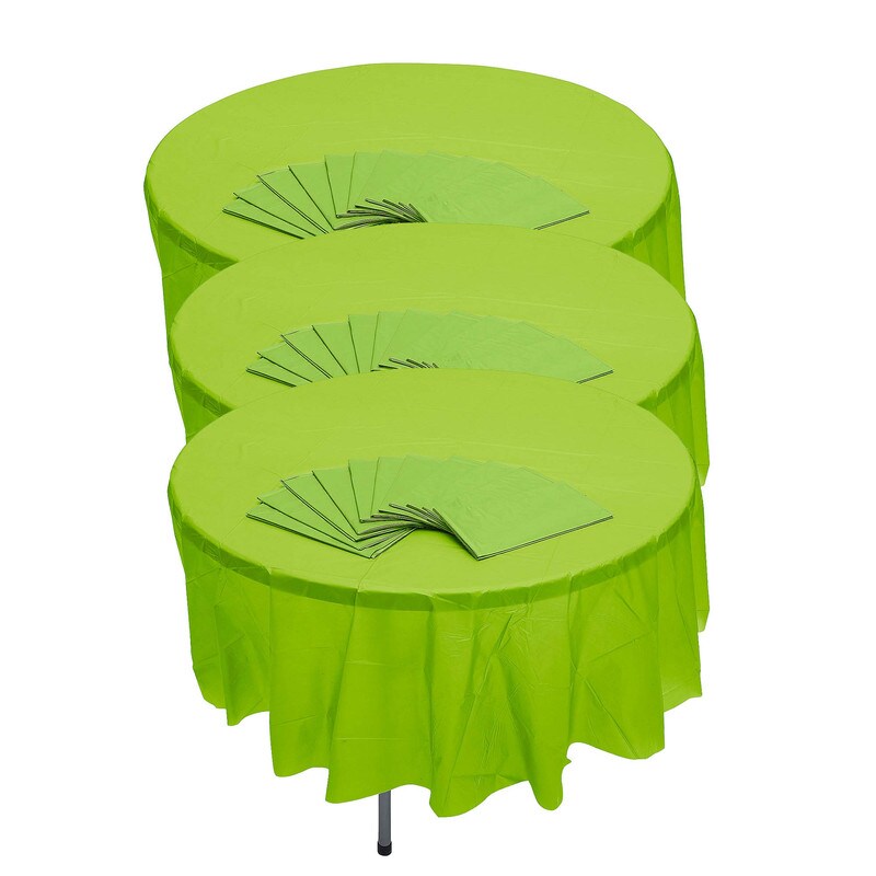 Bulk 12 Pc. Lime Green Round Disposable Plastic Tablecloths 6 Ft. 10"