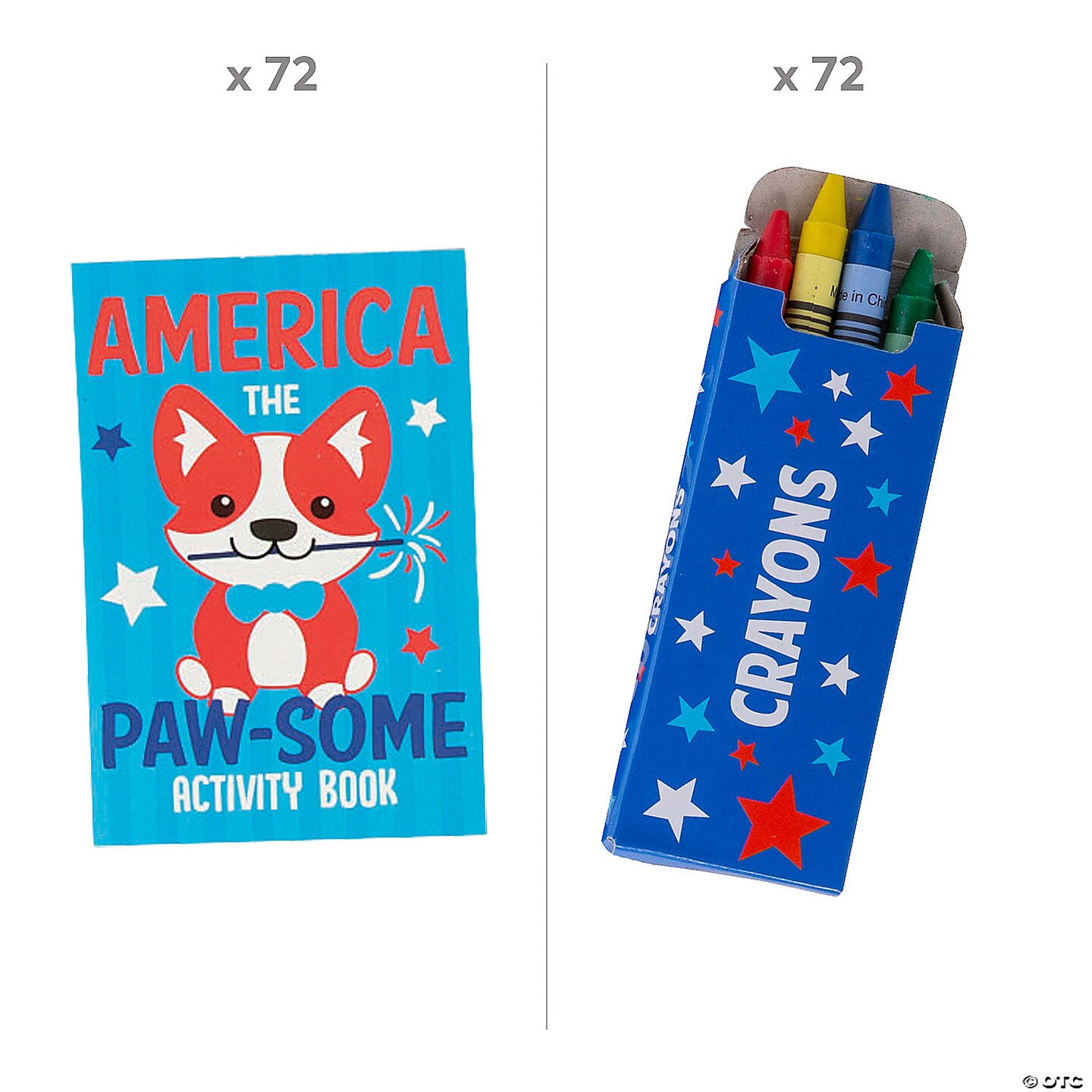 Bulk Patriotic Mini Activity Book & Crayons for 72