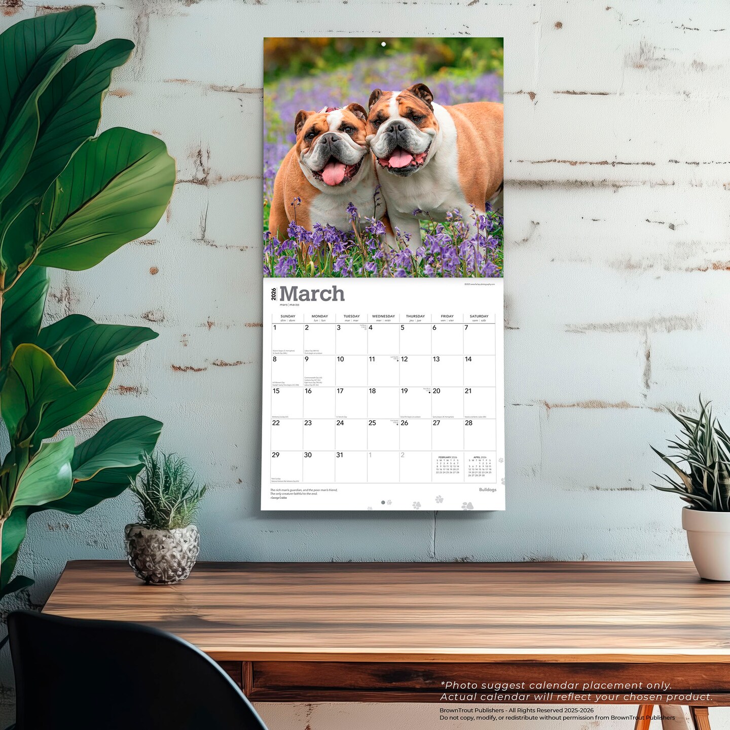 Bulldogs | 2026 12 x 24 Inch (Hanging) Monthly Square Wall Calendar | Plastic-Free