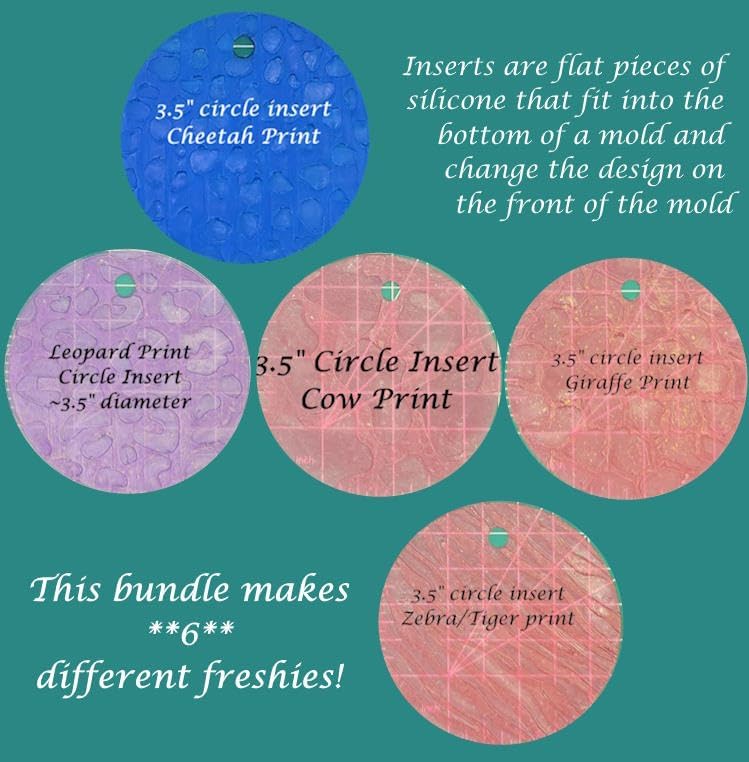 Bundle - 3.5" circle w/post and 5 animal print inserts - Silicone Freshie Mold