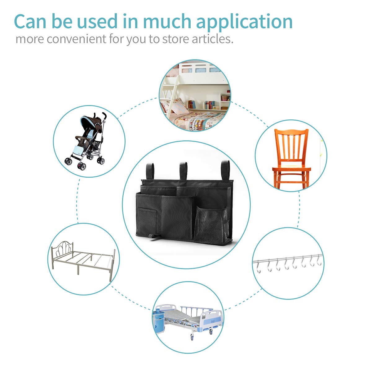 Bunk Bed Organizer, Bedside Caddy Hanging Bed Organizer Storage Bag 8 Pockets, for College Dorm Rooms Bed, Hospital Bed, Baby Bed Rails, 600D Oxford Cloth