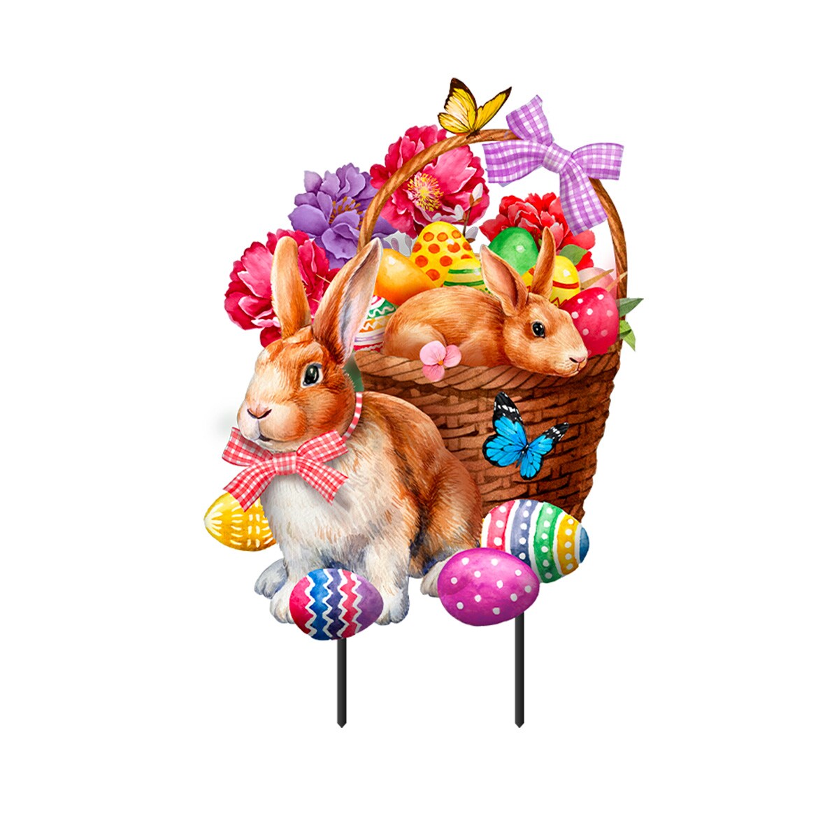Bunnies and Basket Metal Art