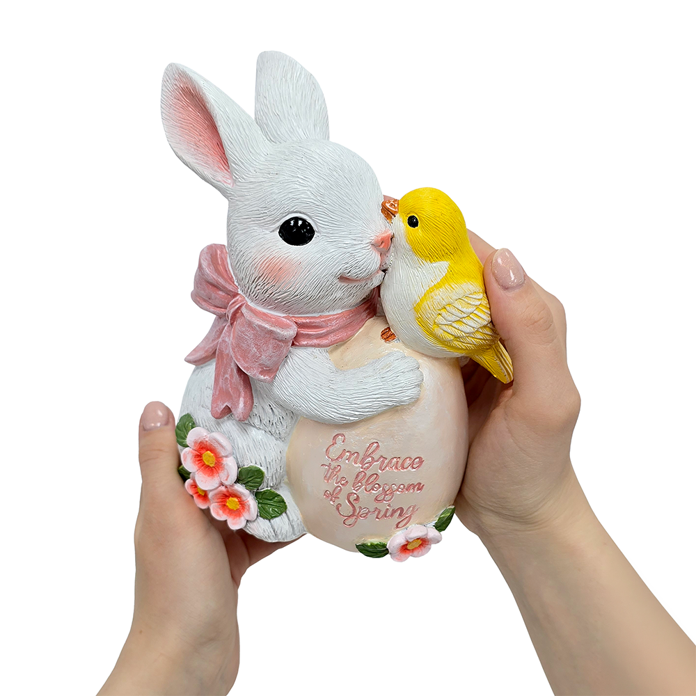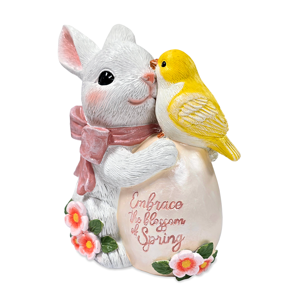 Bunny and Yellow Bird Easter Garden Statue, 7" Spring Rabbit Figurine Outdoor Decor